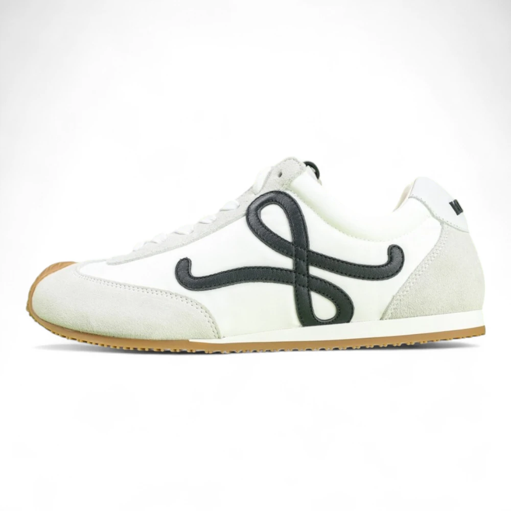 The L BALLET Runner 2.0 Black/White Sneakers offer a minimalist take on retro athleticism with premium material interplay and refined branding. The upper blends nylon and calfskin leather, delivering both structure and breathability. A sock-like internal fit ensures all-day comfort, while the rubber outsole wraps the toe for added protection and support. Signature accents—including the embroidered L monogram, Anagram embossing on the tongue, and heel branding—add subtle yet distinctive identity to this clean, versatile silhouette.
