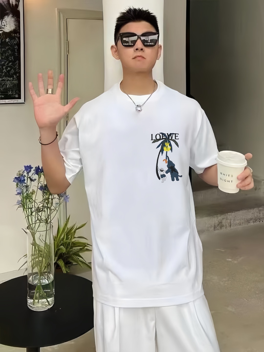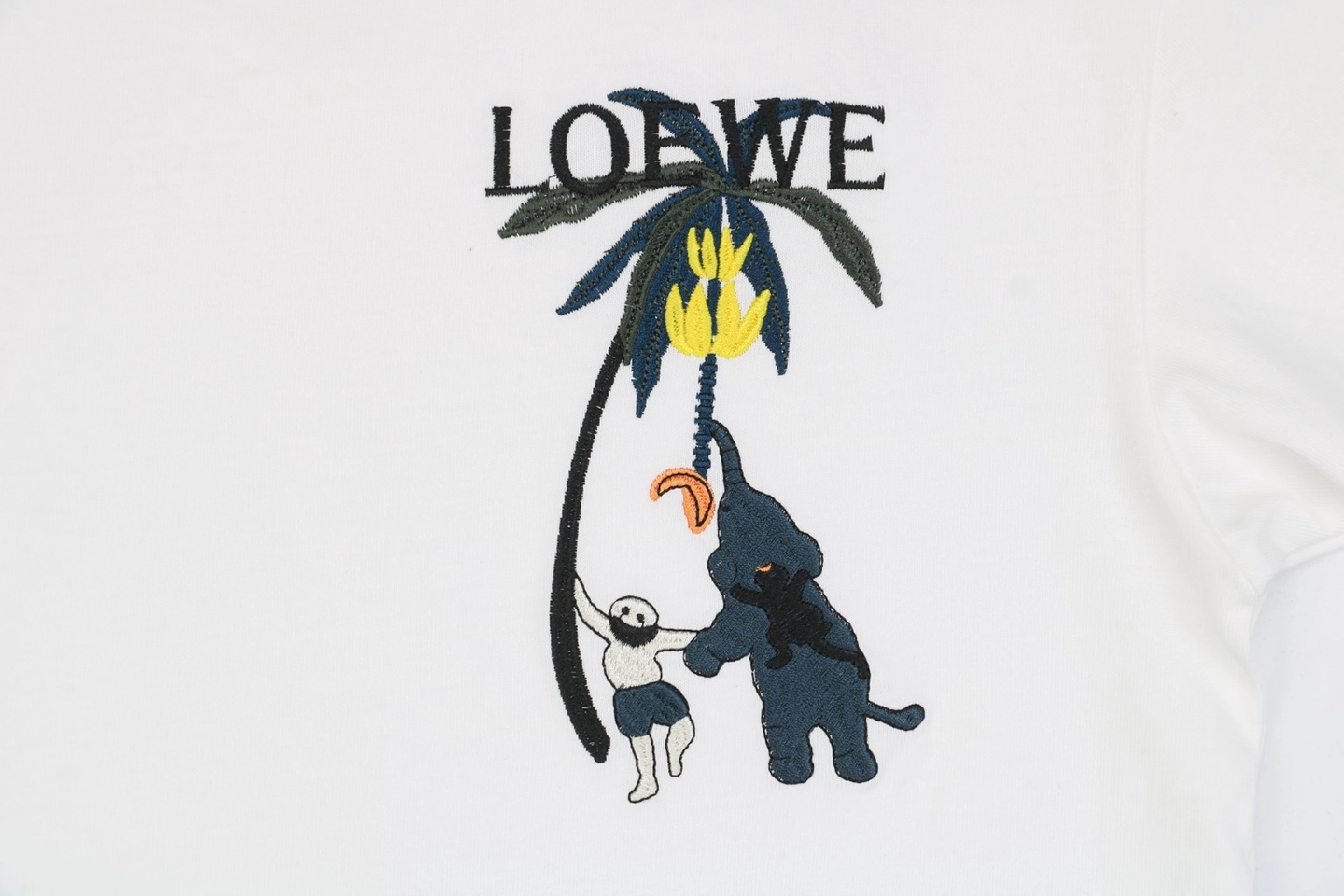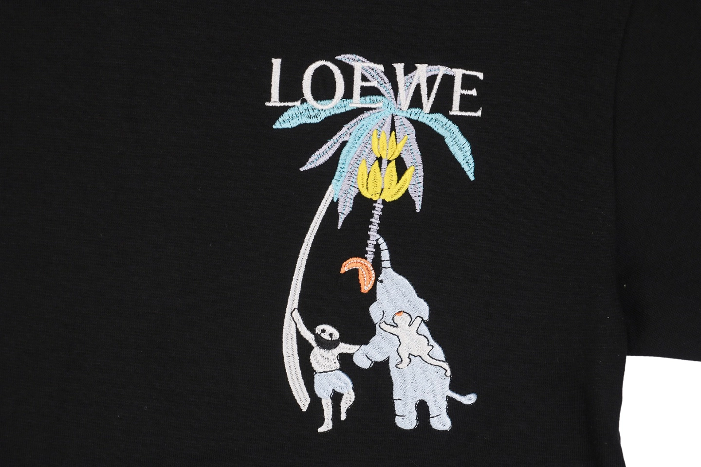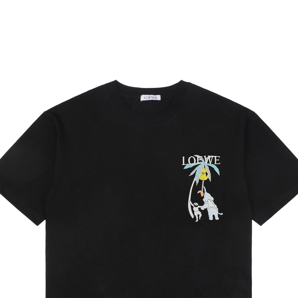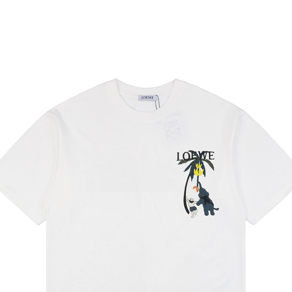 The L Banana Tree & Elephant Embroidered T-Shirt brings playful nature-inspired storytelling into everyday wear. Made from soft, high-thread-count cotton, it features a whimsical multi-colored embroidery of a banana tree and cartoon-style elephant across the chest—adding dimension, charm, and visual warmth. With a classic crew neckline and relaxed straight-cut silhouette, this tee reflects L’s unique balance between luxury craftsmanship and expressive creativity.
