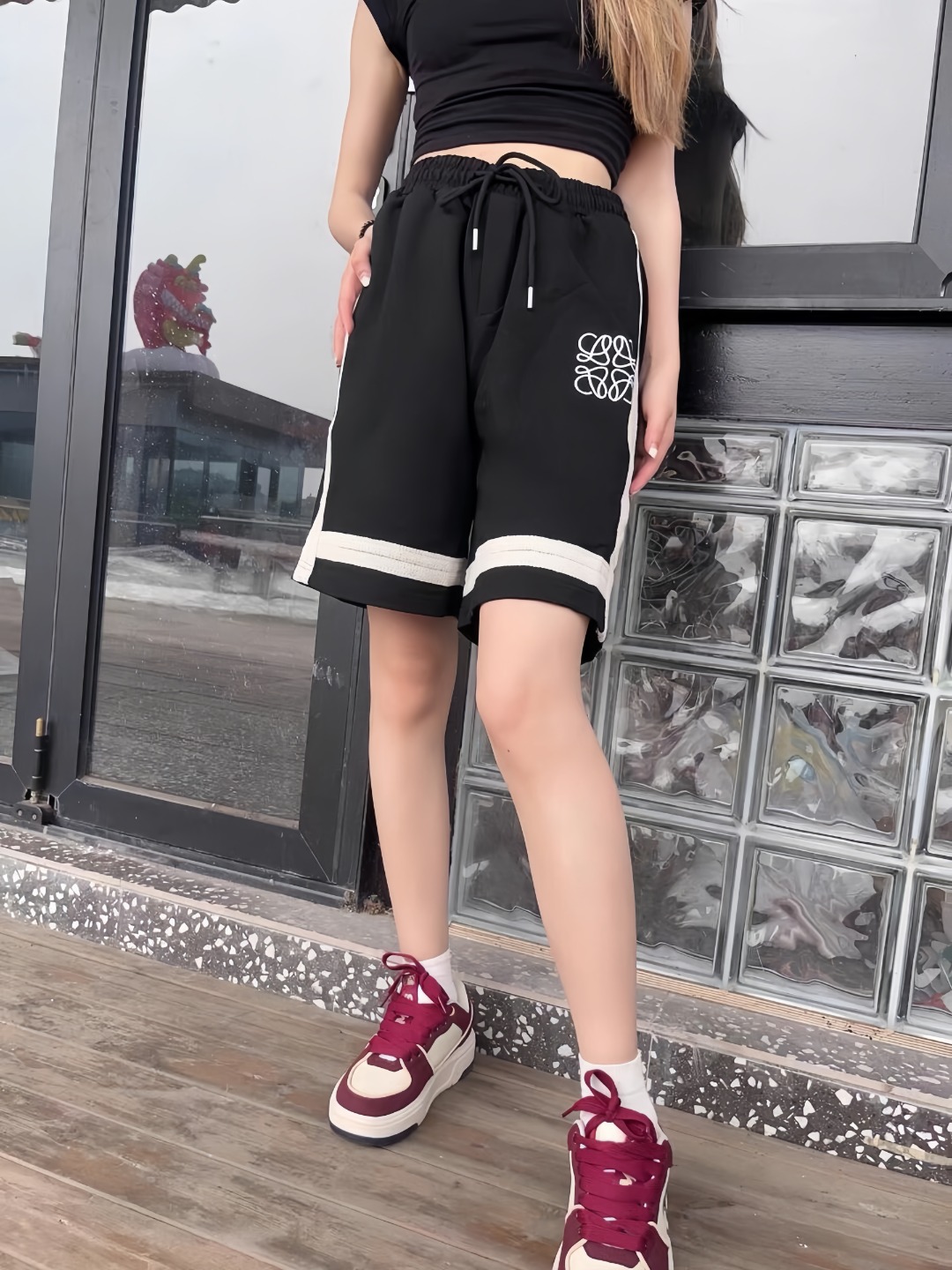The L Braided Webbing Floral Logo Embroidered Shorts combine tactile craftsmanship with modern tailoring. Featuring a prominent 3D floral logo embroidery on the leg and artisanal braided webbing accents, these shorts fuse artistic flair with contemporary streetwear sensibility. Cut from premium cotton-blend fabric, they offer a balance between structure and comfort, with an elastic waistband and drawstring for adaptive ease. Ideal for relaxed city outings or casual getaways.