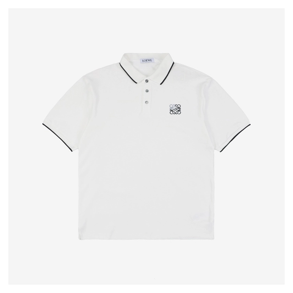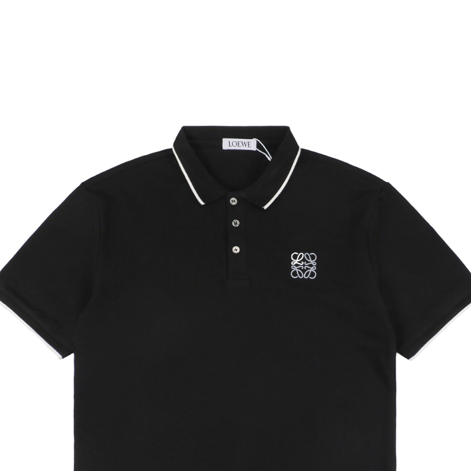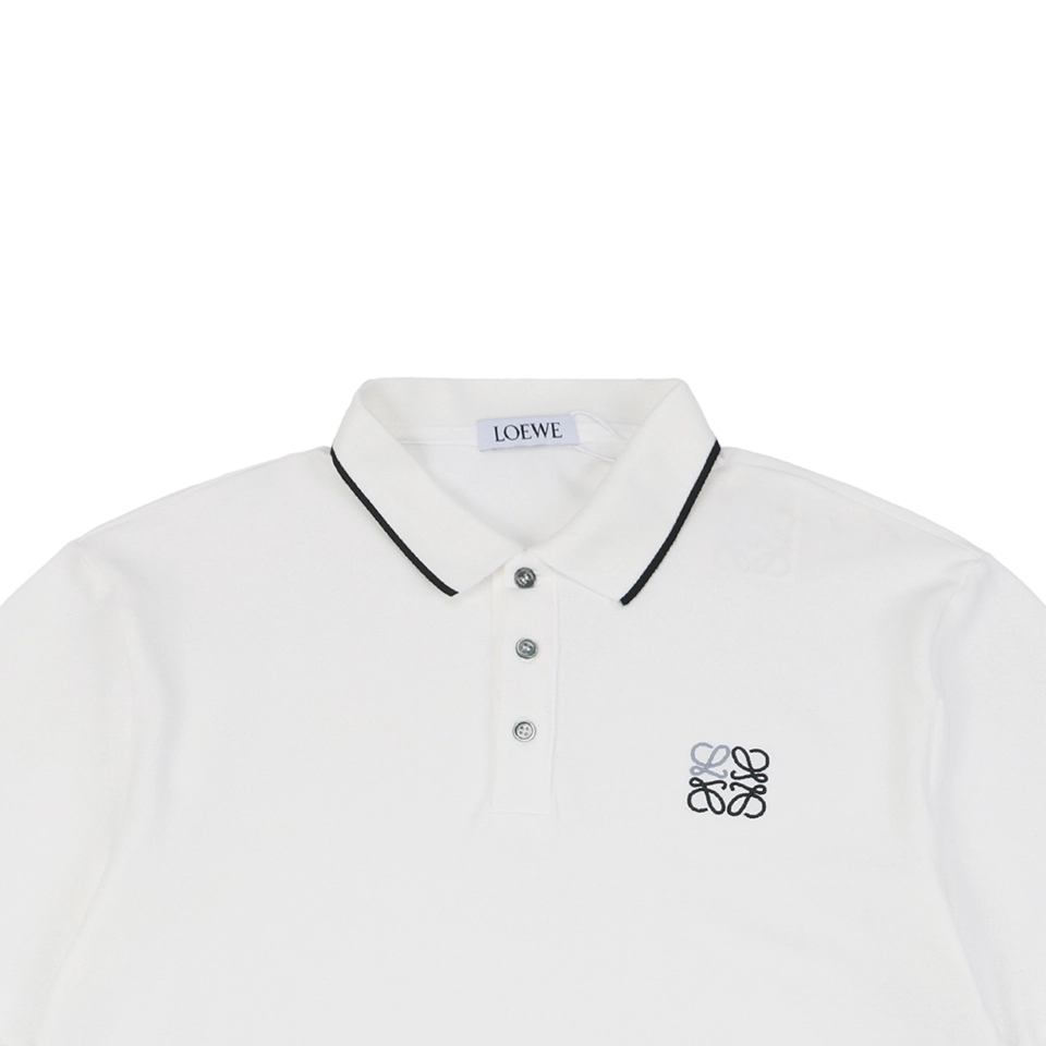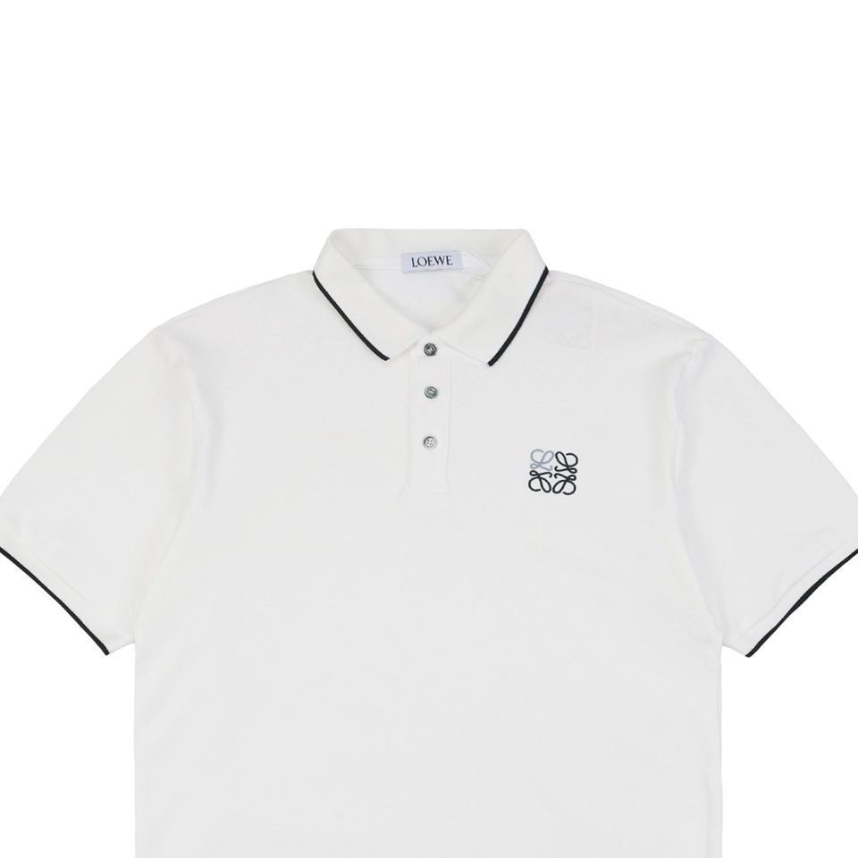 The L Contrast Stitch Logo Embroidery Polo T-shirt balances classic design with signature brand elements. Crafted from smooth cotton piqué, this tee features contrast piping along the collar and sleeves, along with a delicately embroidered Anagram logo on the left chest. The structured collar with a three-button placket and regular fit create a clean silhouette perfect for upscale casual wear. Available in monochrome black or white, each with refined detailing, this piece exemplifies effortless sophistication.