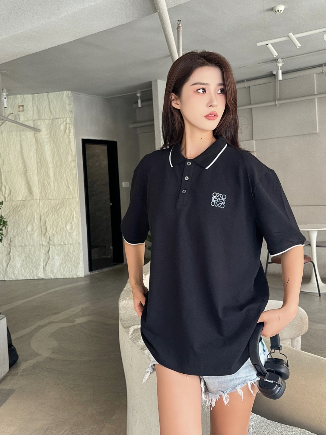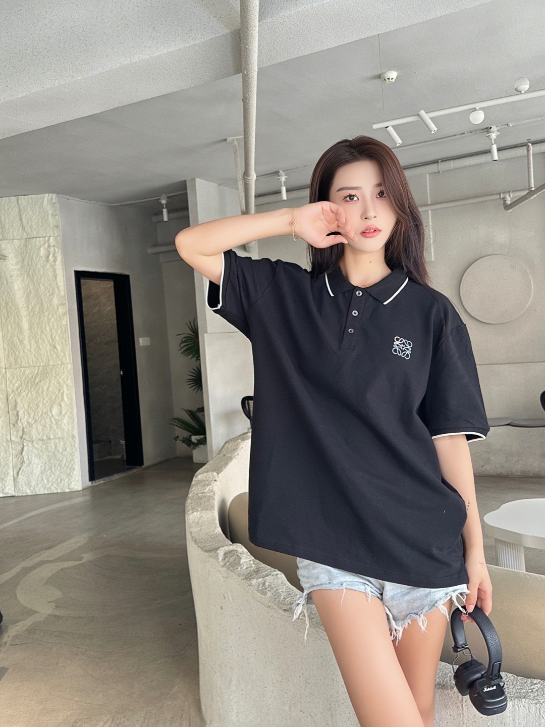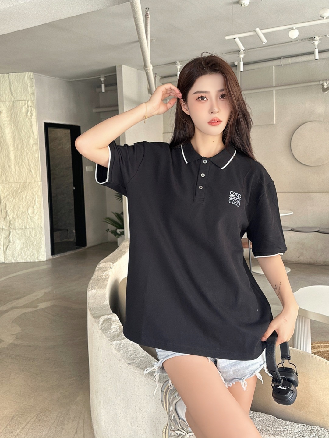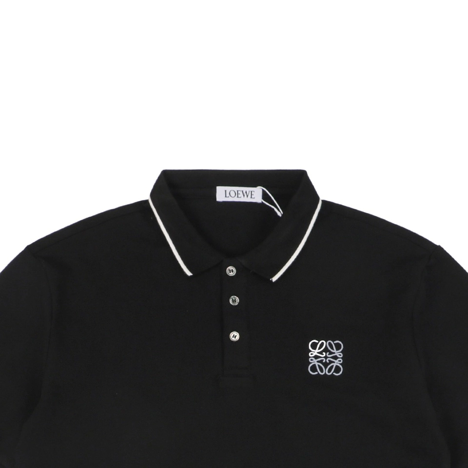 The L Contrast Stitch Logo Embroidery Polo T-shirt balances classic design with signature brand elements. Crafted from smooth cotton piqué, this tee features contrast piping along the collar and sleeves, along with a delicately embroidered Anagram logo on the left chest. The structured collar with a three-button placket and regular fit create a clean silhouette perfect for upscale casual wear. Available in monochrome black or white, each with refined detailing, this piece exemplifies effortless sophistication.
