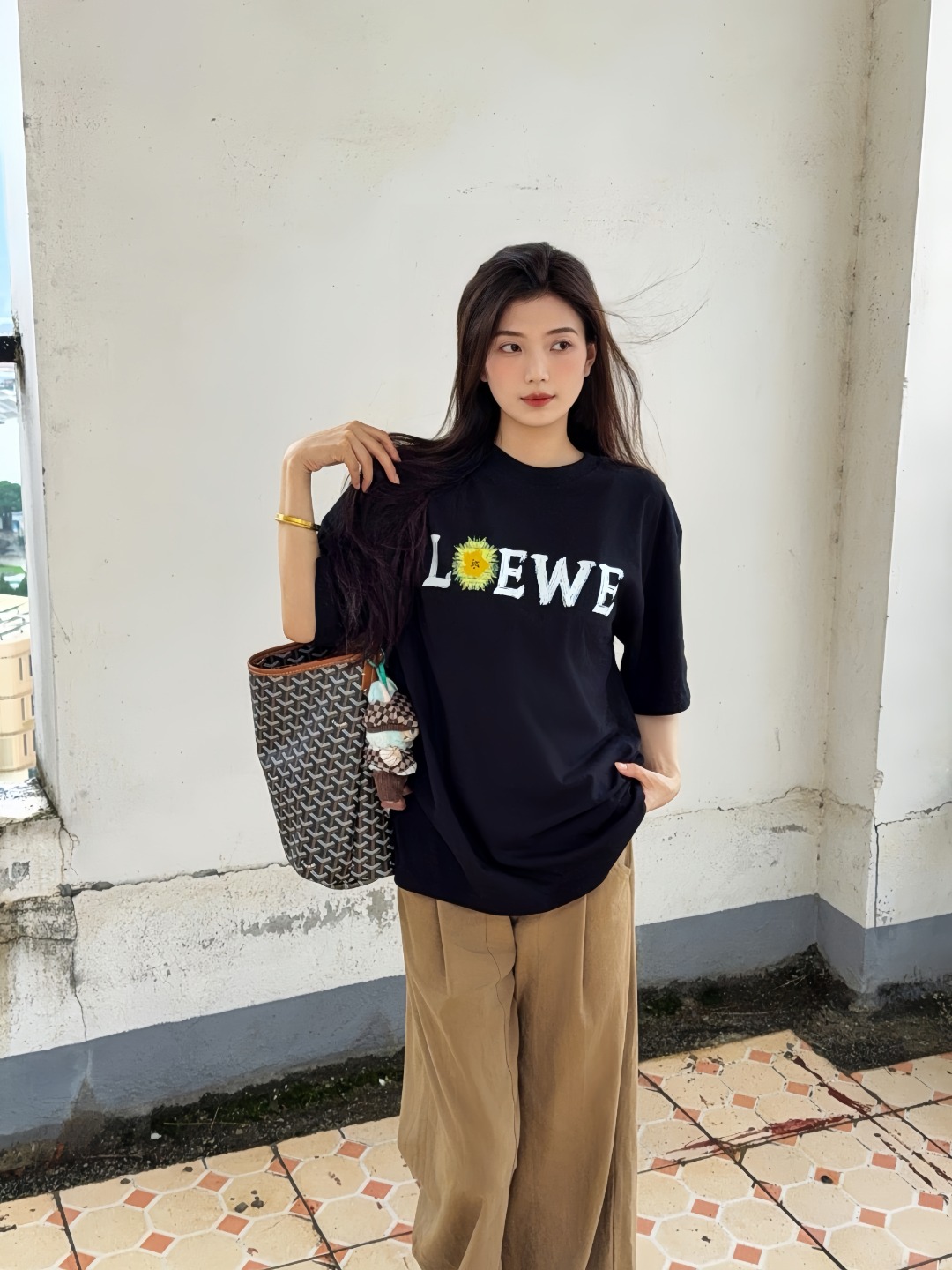 The L Daisy Logo Print T-shirt blends understated elegance with playful floral detailing. Crafted from soft, breathable cotton, this tee features a textured daisy graphic integrated into the L lettering at the chest, complemented by an enlarged daisy-accented anagram motif on the back. The classic crew neck and relaxed fit provide day-long comfort, while the black base enhances the vibrancy of the prints. Perfect for adding a refined yet casual touch to your everyday wardrobe.