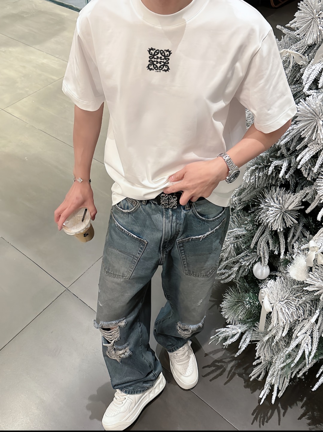 The L Dragon Floral Logo Embroidered T-Shirt merges Eastern iconography with brand identity through intricate multicolor stitching. Made from fine combed cotton, the fabric balances breathability with structure. Across the chest, a coiled dragon motif wraps around the L logo, executed with dynamic needlework that brings depth and motion to the piece. The relaxed silhouette and crew neckline complete a look that blends heritage symbolism with modern edge.
