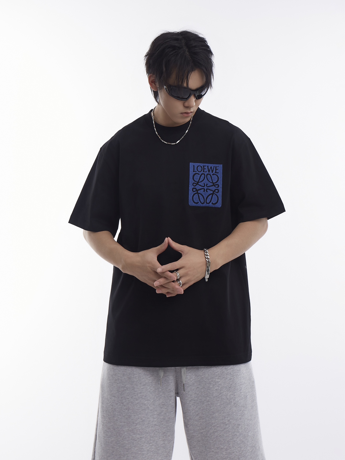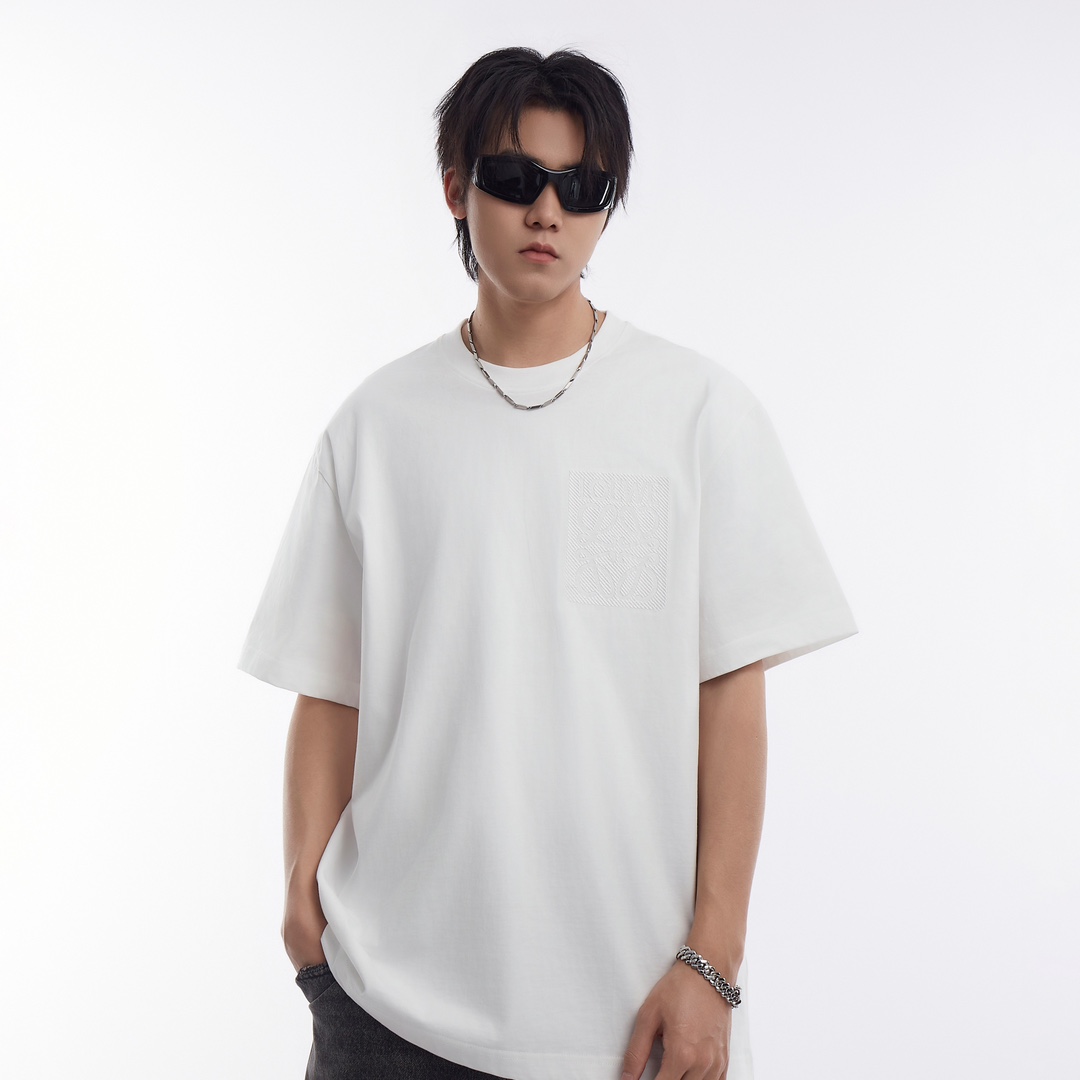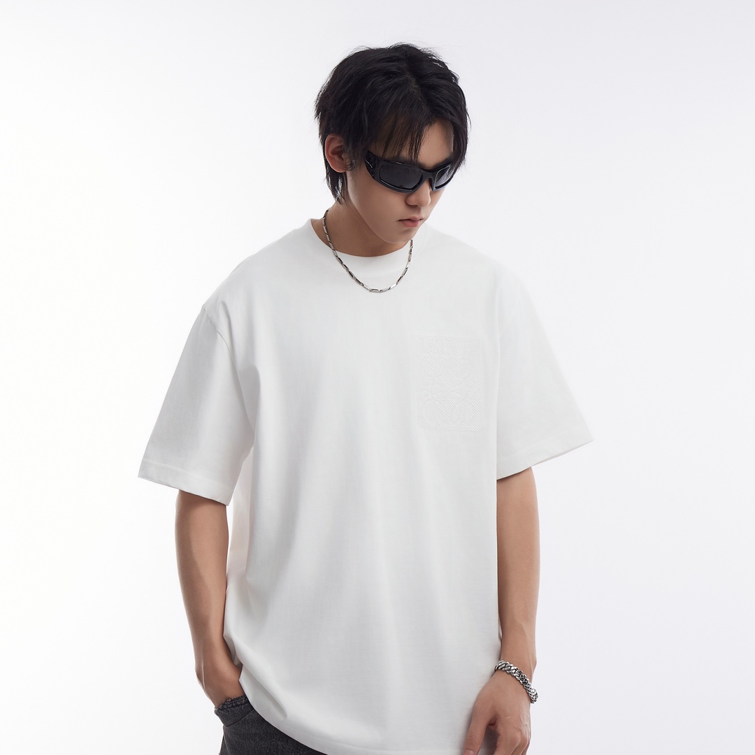 The L Woven Floral Logo Faux Pocket Embroidered T-Shirt plays with visual layering by combining tactile embroidery with a trompe-l’œil faux pocket outline. Crafted from heavyweight cotton, the tee is structured yet breathable. The chest design features a woven-textured L floral emblem, framed by stitched lines mimicking a pocket—creating depth and interest on an otherwise minimalist silhouette. Finished with a relaxed fit and crew neckline, this piece balances subtle experimentation with daily wearability.