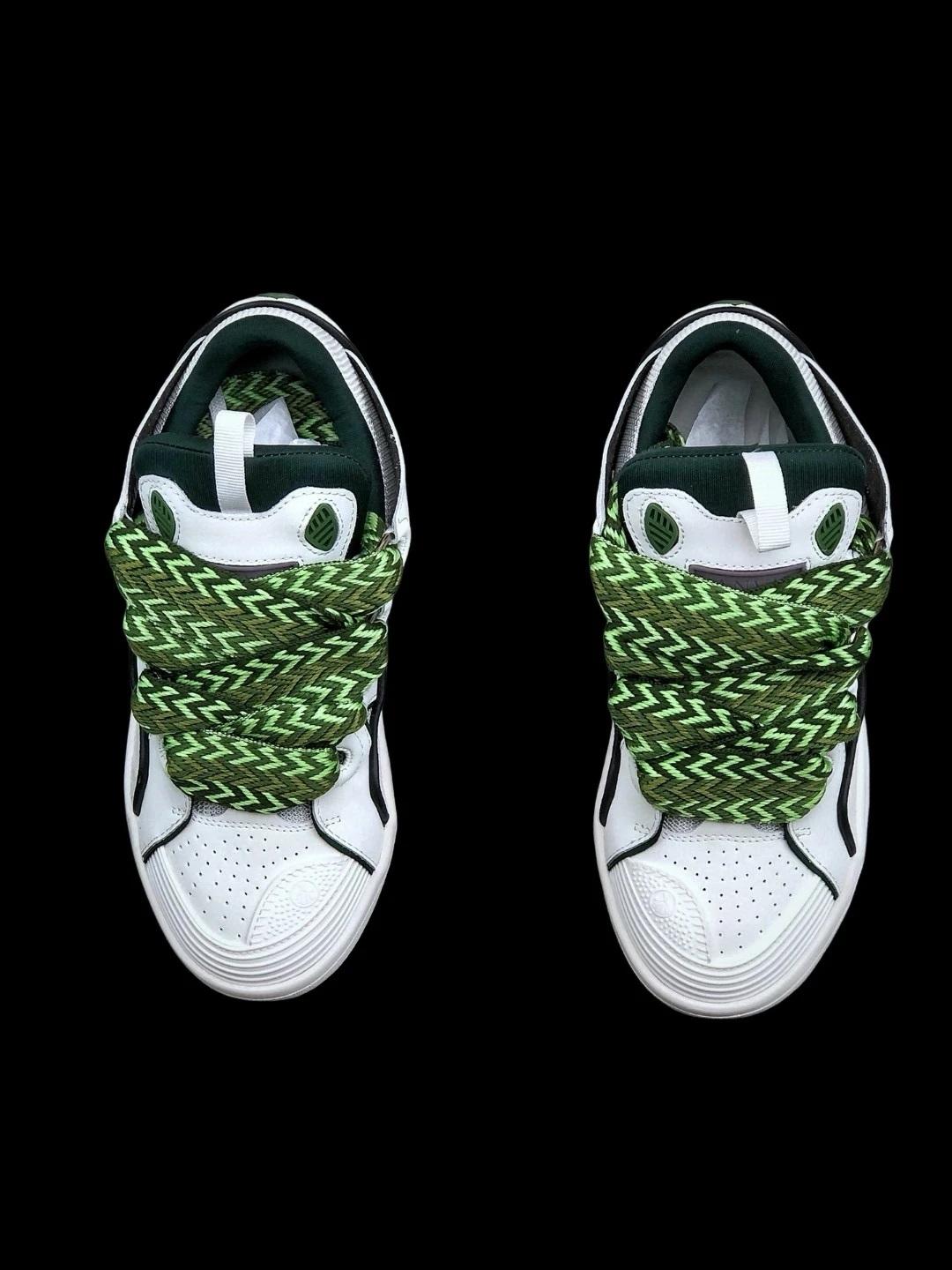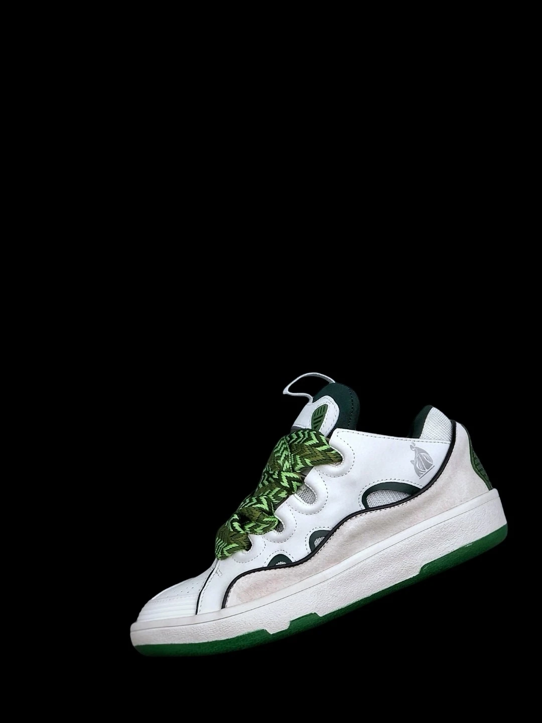 The upper is made of high-quality leather and suede materials, which not only has outstanding texture, but also ensures the durability and comfort of the shoes. A highlight of the shoe design is the wide laces, which is also the iconic element of the Lanvin Curb series. The unique design of the shoelaces adds a touch of fashion to the overall shape, making this shoe stand out among many sneakers.