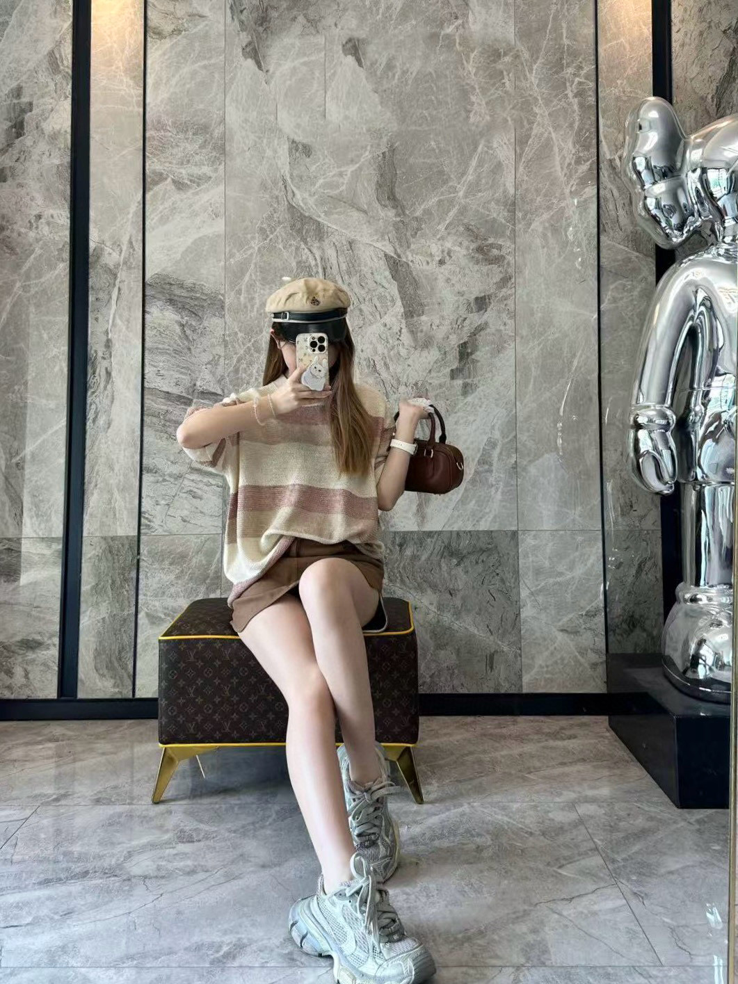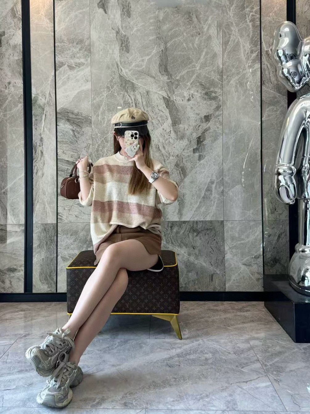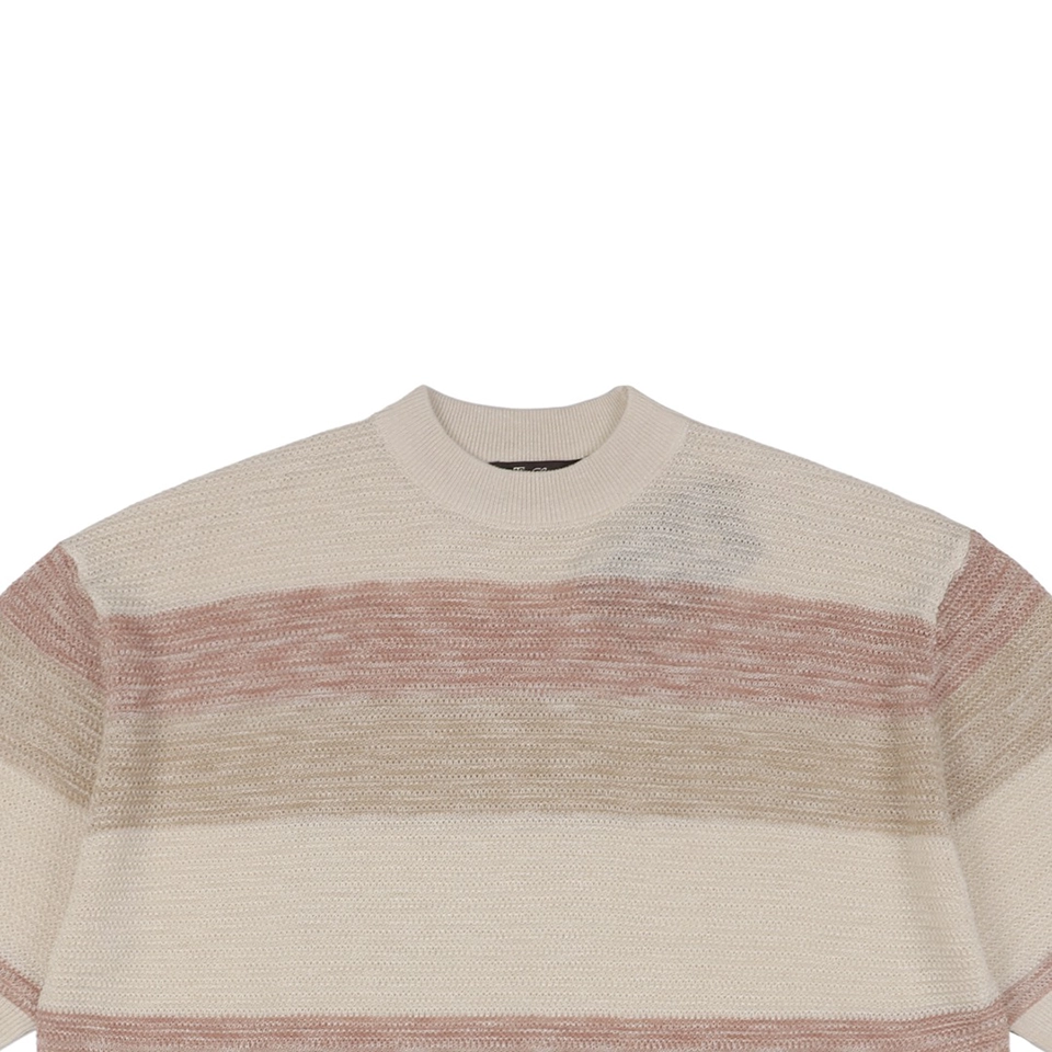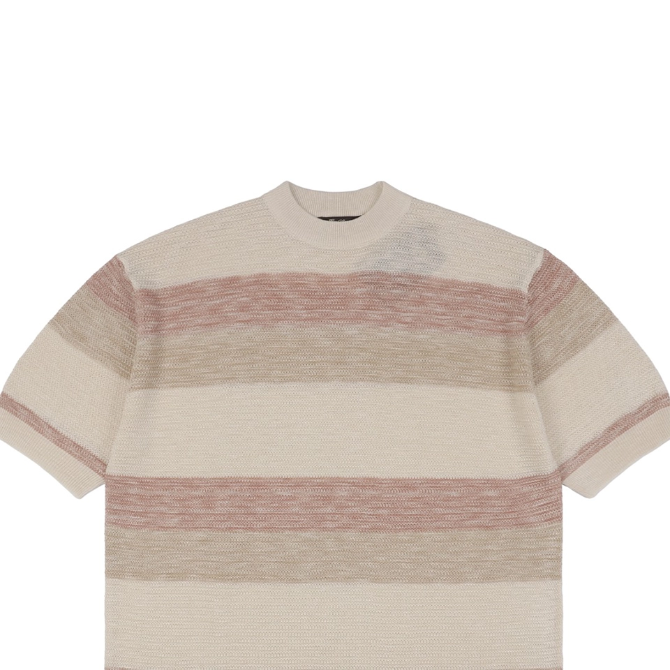 The LP Multicolor Striped Knit T-shirt features a refined blend of beige, khaki, and dusty rose stripes for a muted yet sophisticated look. Crafted from a soft, breathable knit fabric, this piece offers a relaxed silhouette and elevated comfort. The minimalist design reflects LP’s understated luxury, making it suitable for both casual layering and solo wear.