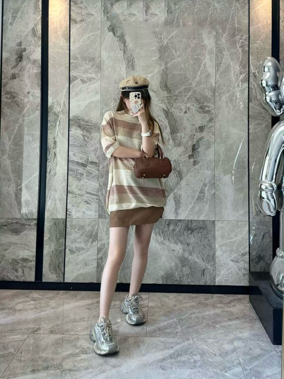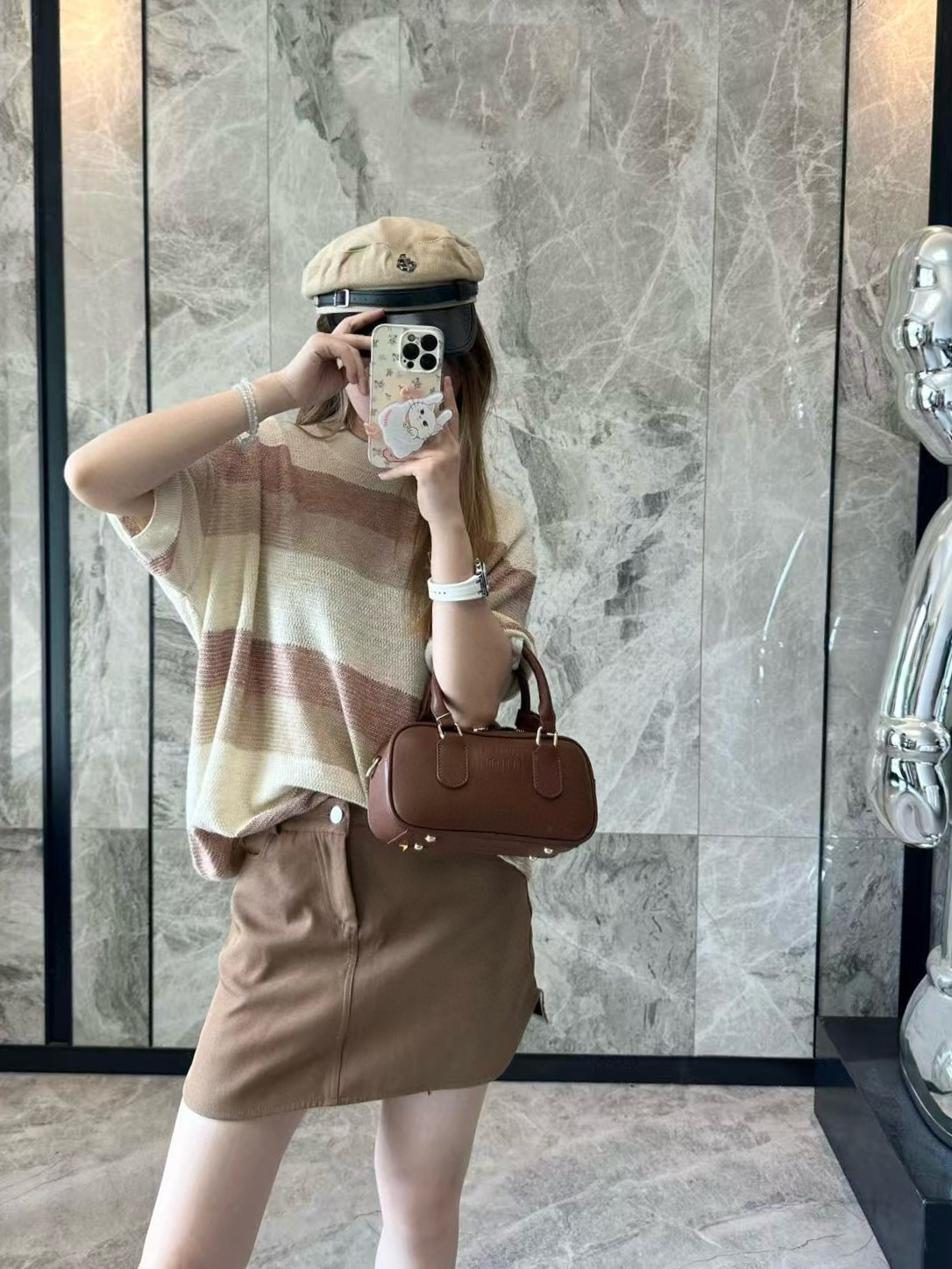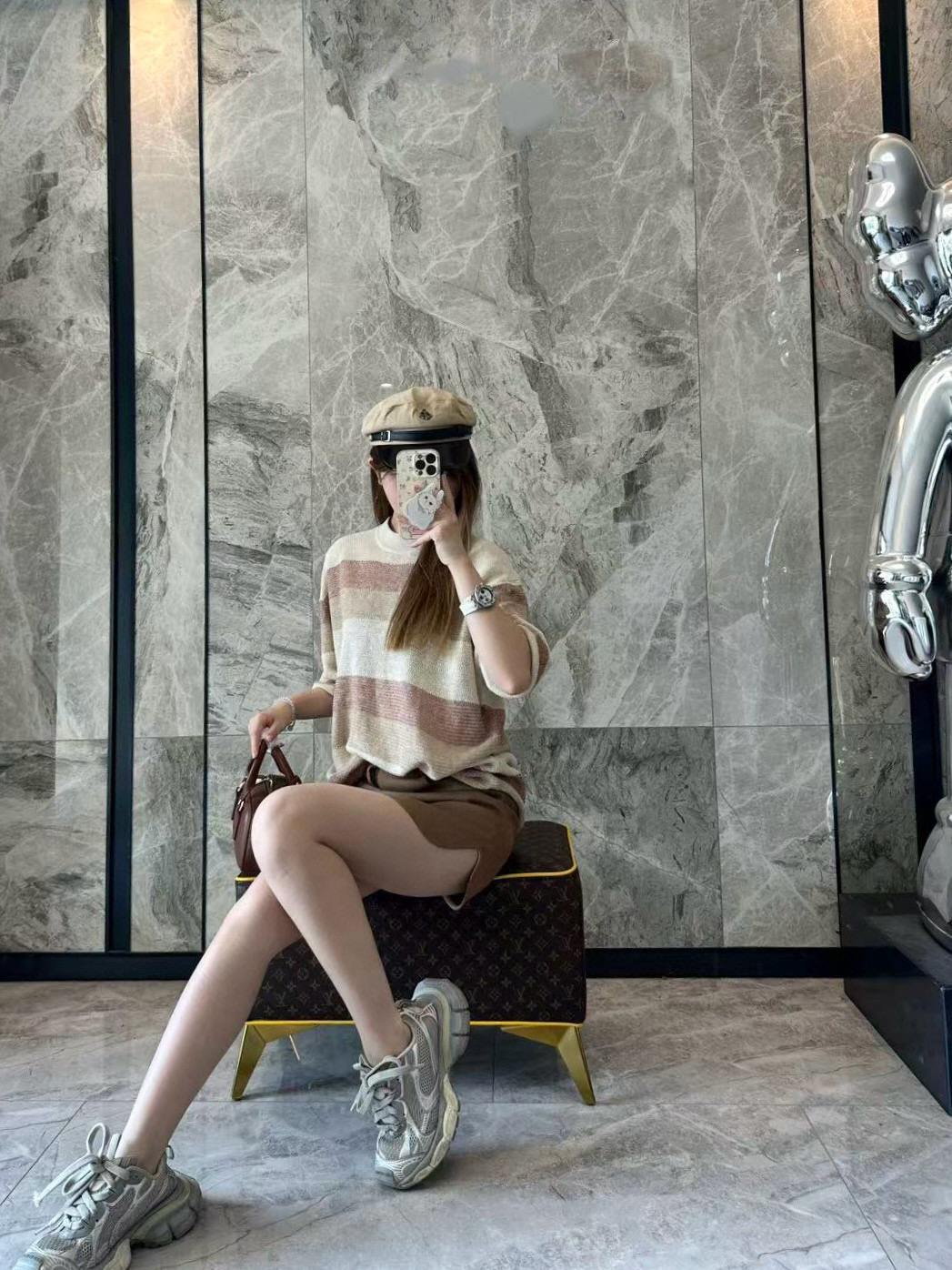 The LP Multicolor Striped Knit T-shirt features a refined blend of beige, khaki, and dusty rose stripes for a muted yet sophisticated look. Crafted from a soft, breathable knit fabric, this piece offers a relaxed silhouette and elevated comfort. The minimalist design reflects LP’s understated luxury, making it suitable for both casual layering and solo wear.