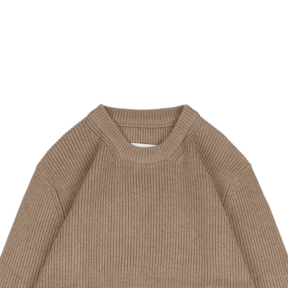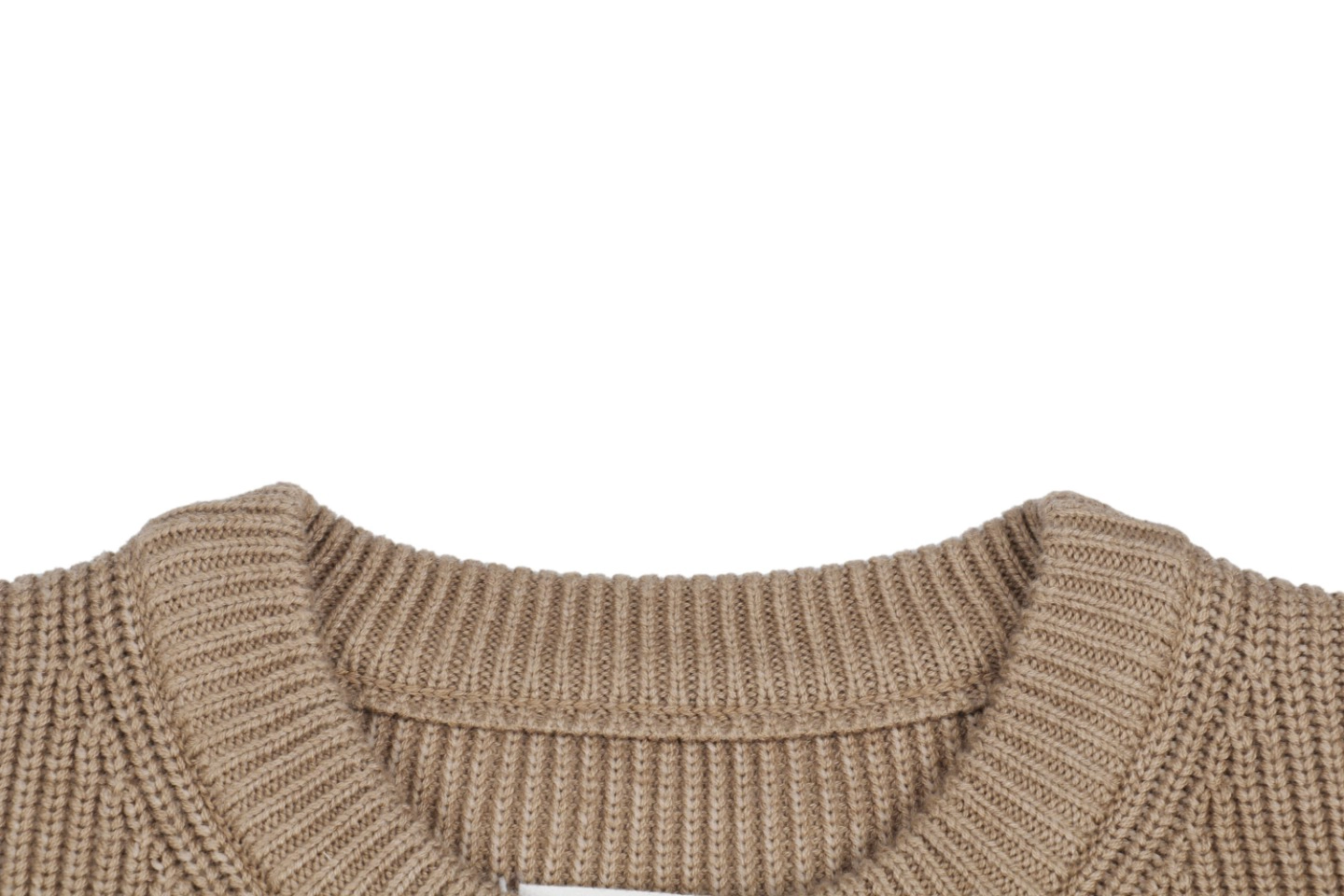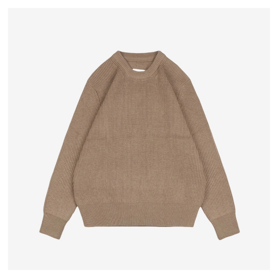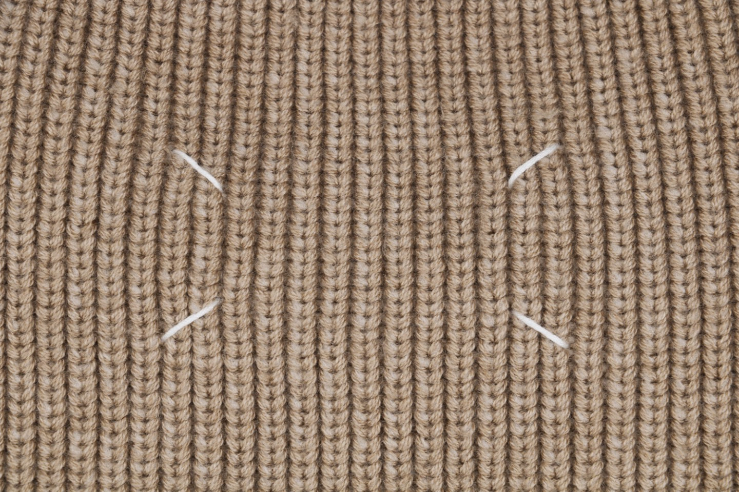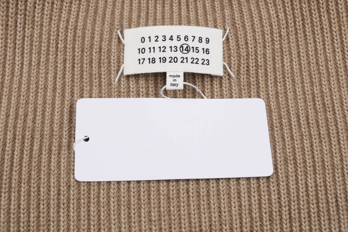 Maison Margiela Back Four-Stitch Detail Plain Sweater, which conforms to the current archival tone. The whole piece uses 85% cotton, 10% cashmere, 5% spandex as raw materials. Two layers of thick screws are made up of double thick threads, which can effectively contract the hem and neckline so that the hem and collar will not deform. The single scales are woven in a way that feels good.