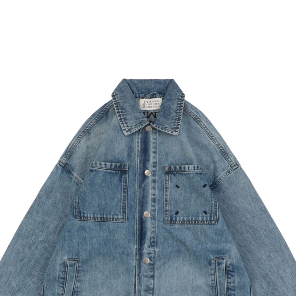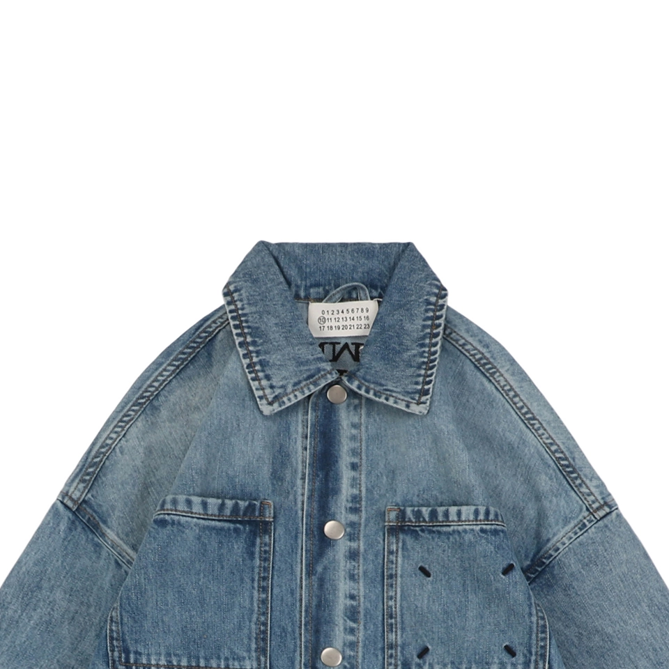 Custom knitted denim fabric is soft and comfortable and has excellent texture. The garments, which have been pre-stretched and treated with water, are more skin-sensitive, breaking the sense of bondage of traditional hard denim. The iconic four-angle seams design on the front adds a retro feel. A low profile does not lose fashionable charm. The inner wirework is fine, reflecting high-end quality. Both front and back embroidery use the Taijima machine collapsed rice and three-dimensional embroidery process, with a cast-dye gloss embroidery line, and Taijima machine multi-needle embroidery, with meticulous and dense needlework, clear patterns and strong lines. The overall design uses a loose oversize profile.