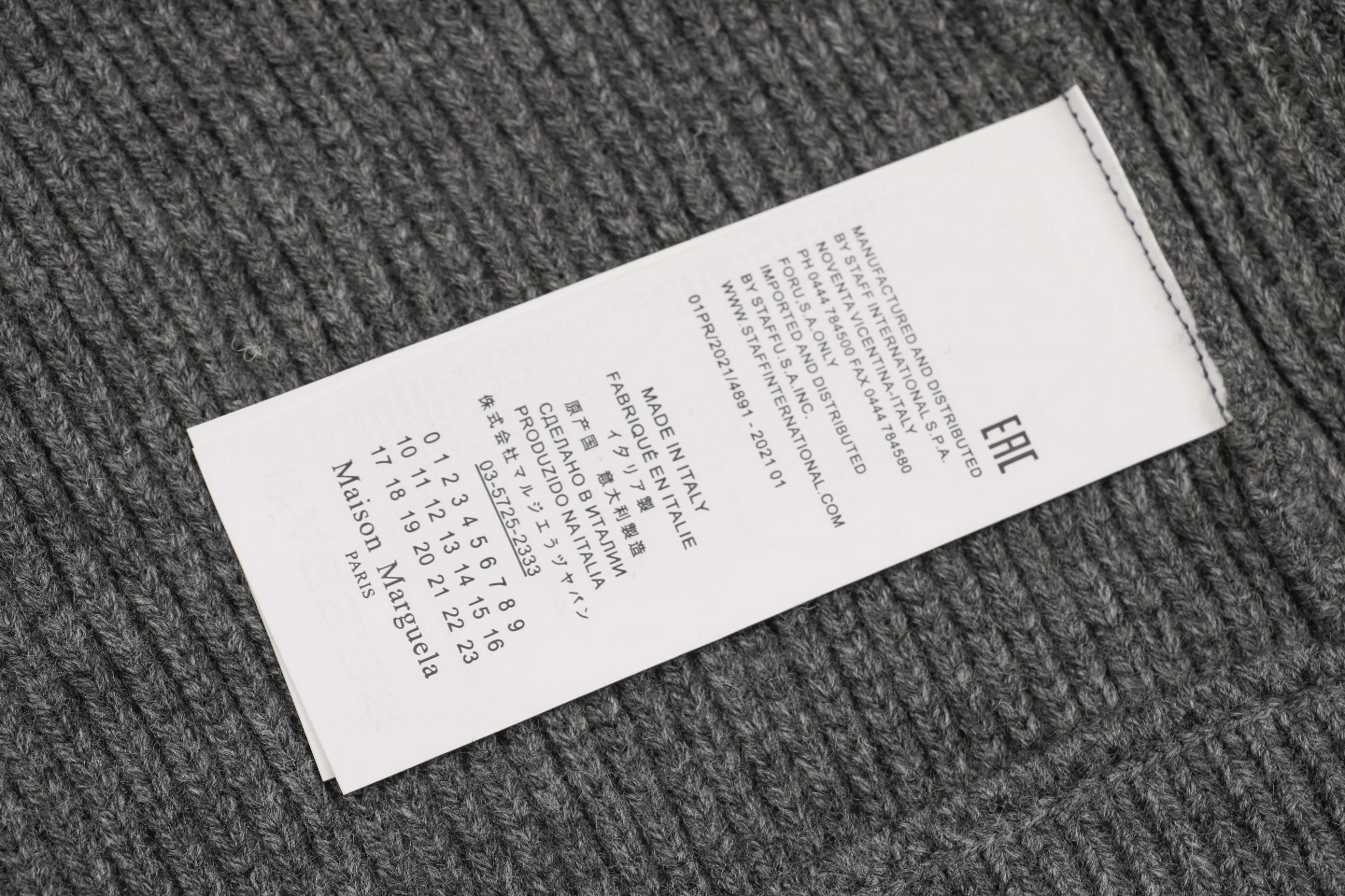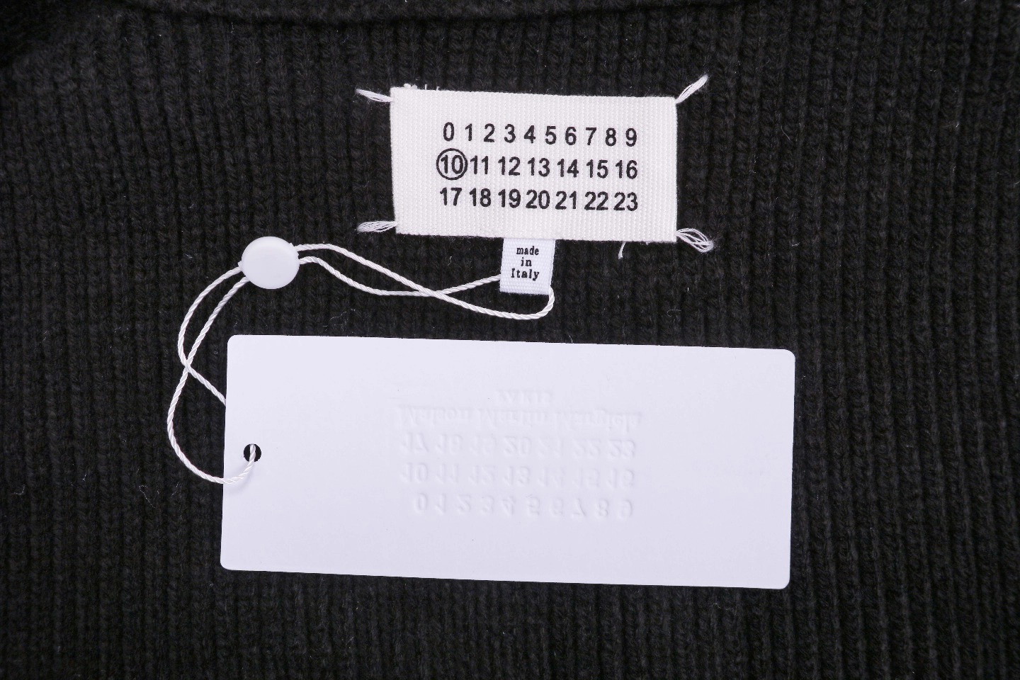 The garment undergoes a meticulous washing and setting process to achieve a soft, relaxed drape while maintaining a clean, architectural shape. The back showcases the brand’s iconic four white stitches, a subtle emblem recognized by Margiela enthusiasts. With its heavyweight build—nearly 2 pounds—the cardigan delivers warmth comparable to a lightweight down jacket, making it a refined everyday essential for autumn and winter.