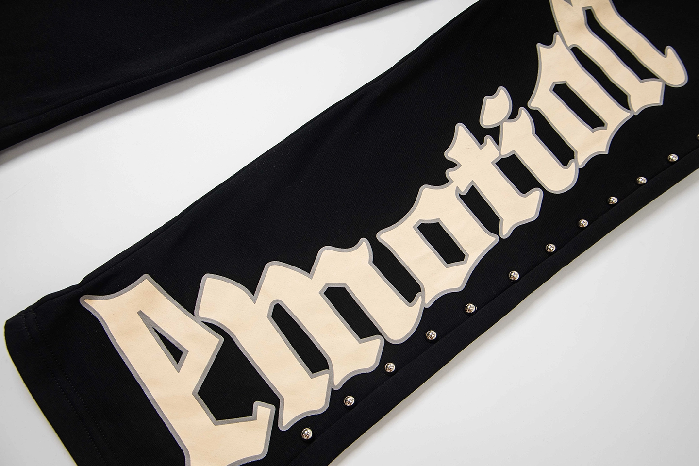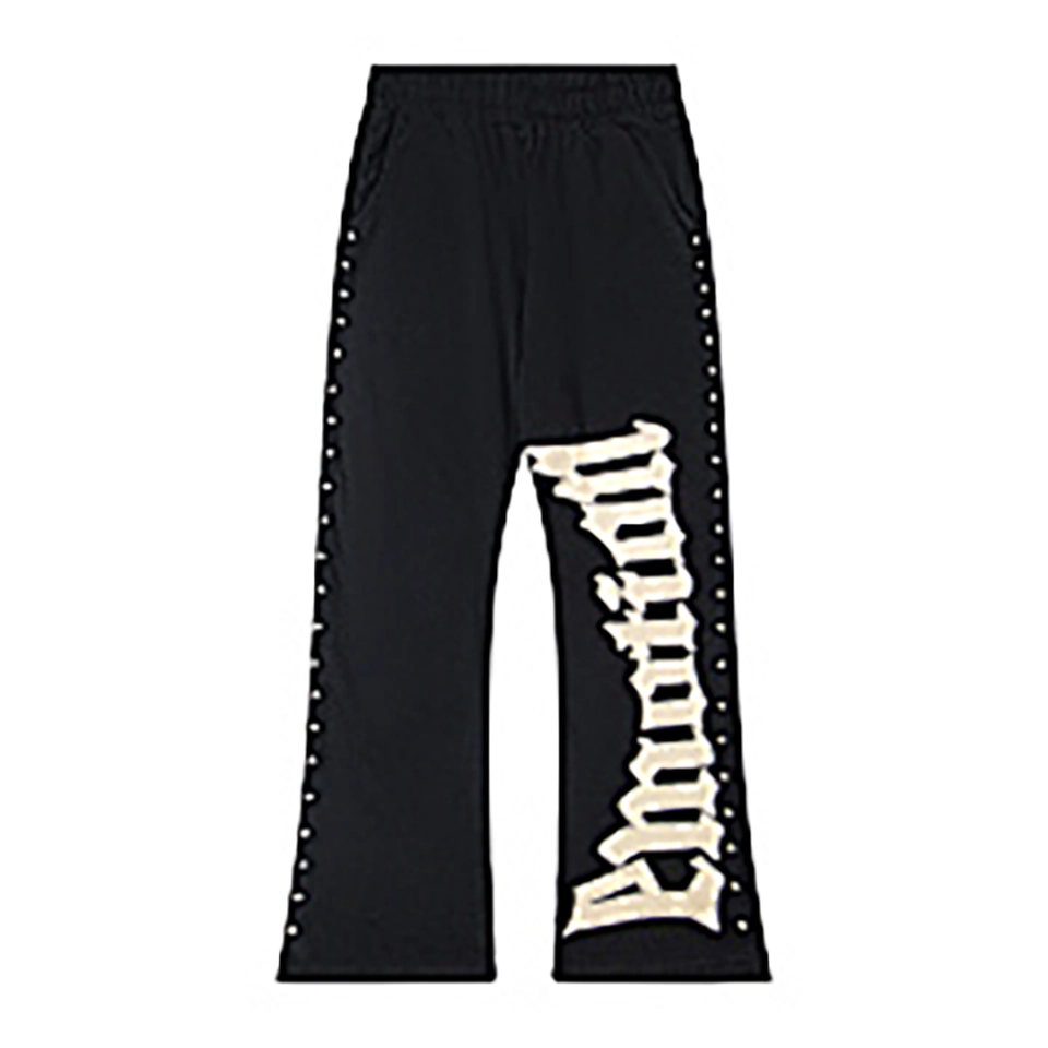 The Mixed Emotion Gothic Snap Pants elevate streetwear basics with heavy visual attitude. Featuring oversized gothic “Emotional” lettering printed vertically along one leg and metallic snap buttons down the side seams, these pants strike a balance between retro metal energy and modern silhouette. Offered in stark black and muted off-white, they deliver contrast, comfort, and confidence in equal measure.