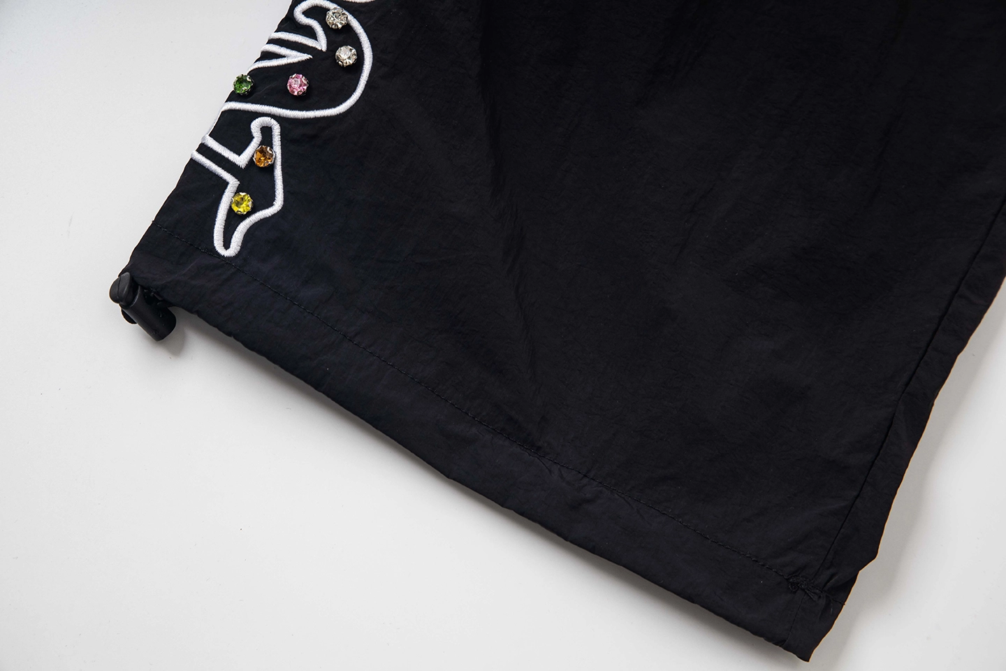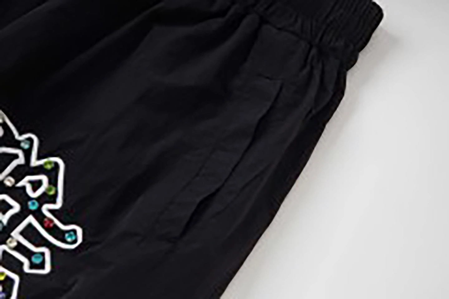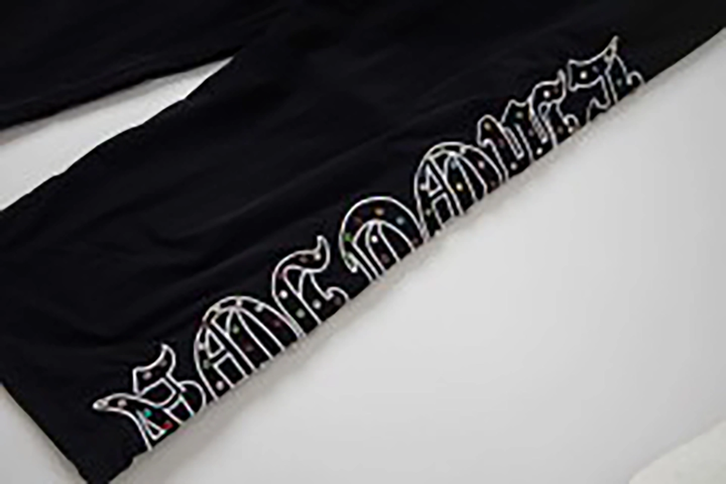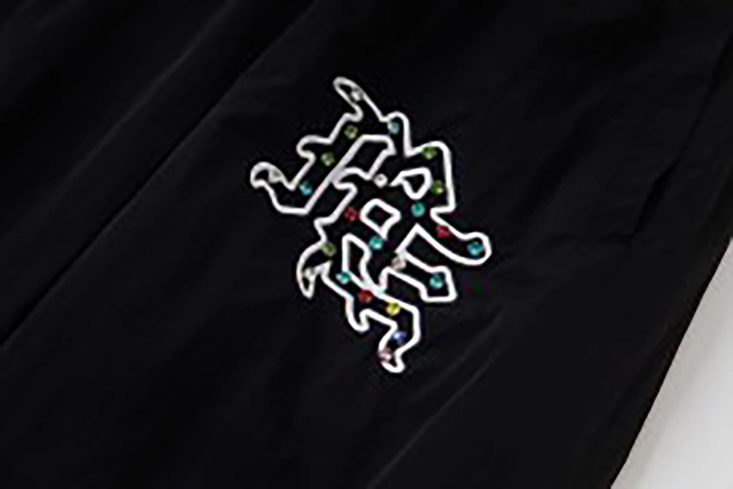 The Mixed Emotion Reflective Gothic Script Black Pants deliver a striking combination of gothic influence and urban energy. Bold reflective gothic-style lettering runs down both legs, flanked by an intricate “ME” monogram near the waist. The blacked-out base allows the holographic outlines and dot textures within the fonts to glow under light. Finished with toggle-adjustable hems and an elastic waistband, this piece blends comfort with raw visual power.