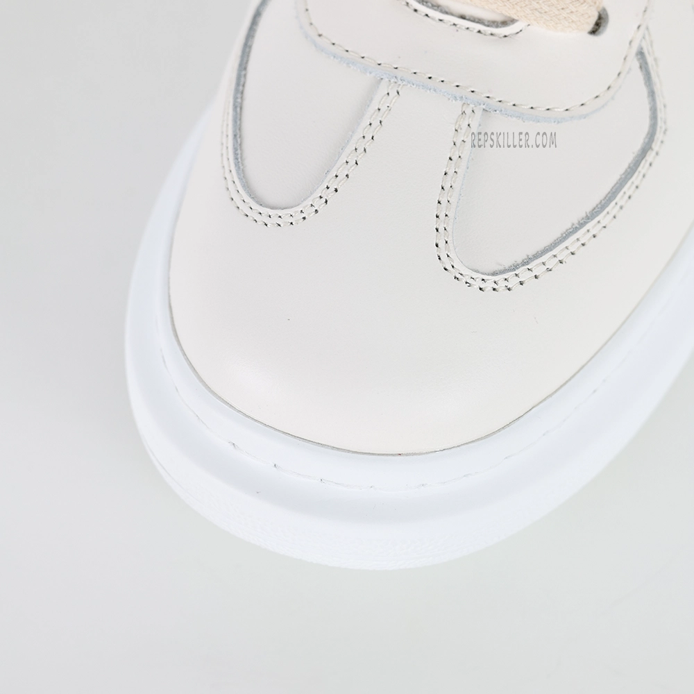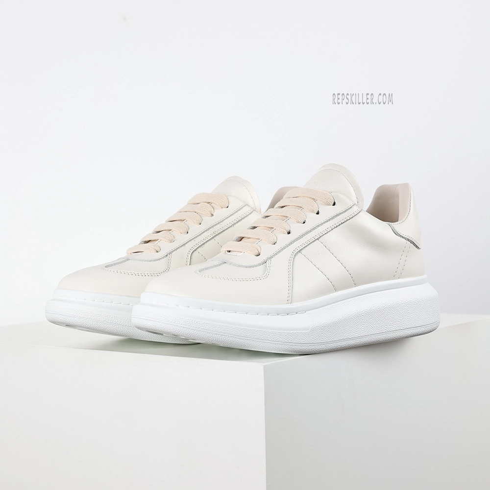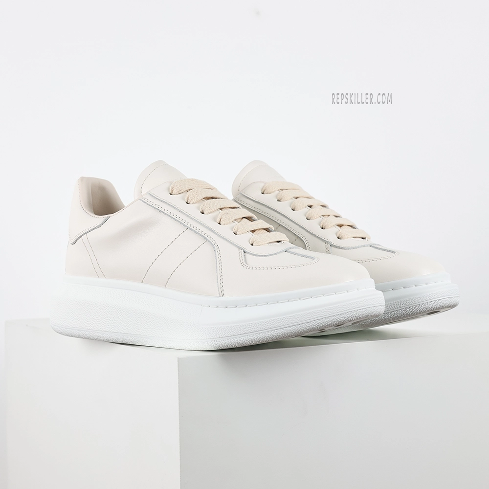 The MQ Oversized Off White Sneakers represent a refined balance of street-ready design and elevated craftsmanship. The upper is crafted from smooth off-white full-grain leather, offering a clean and structured appearance enhanced by precision stitching and a gently rounded profile. MQ’s signature exaggerated rubber sole delivers both visual weight and functional cushioning, subtly flaring out for added presence. Debossed MQ logos at the tongue and heel tab maintain a quiet brand identity, while padded collars and heel counters ensure superior comfort with every step. A versatile staple that transitions effortlessly from everyday wear to smart casual styling.