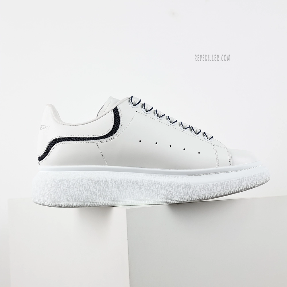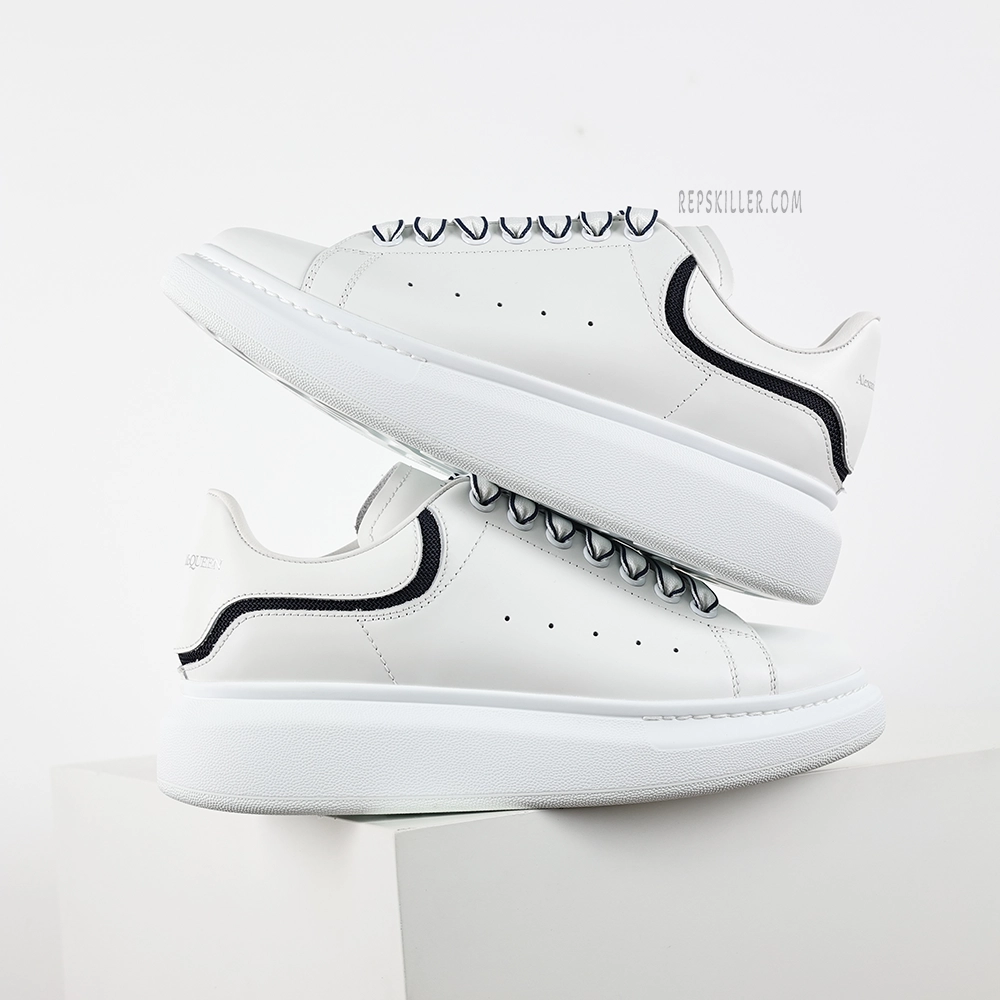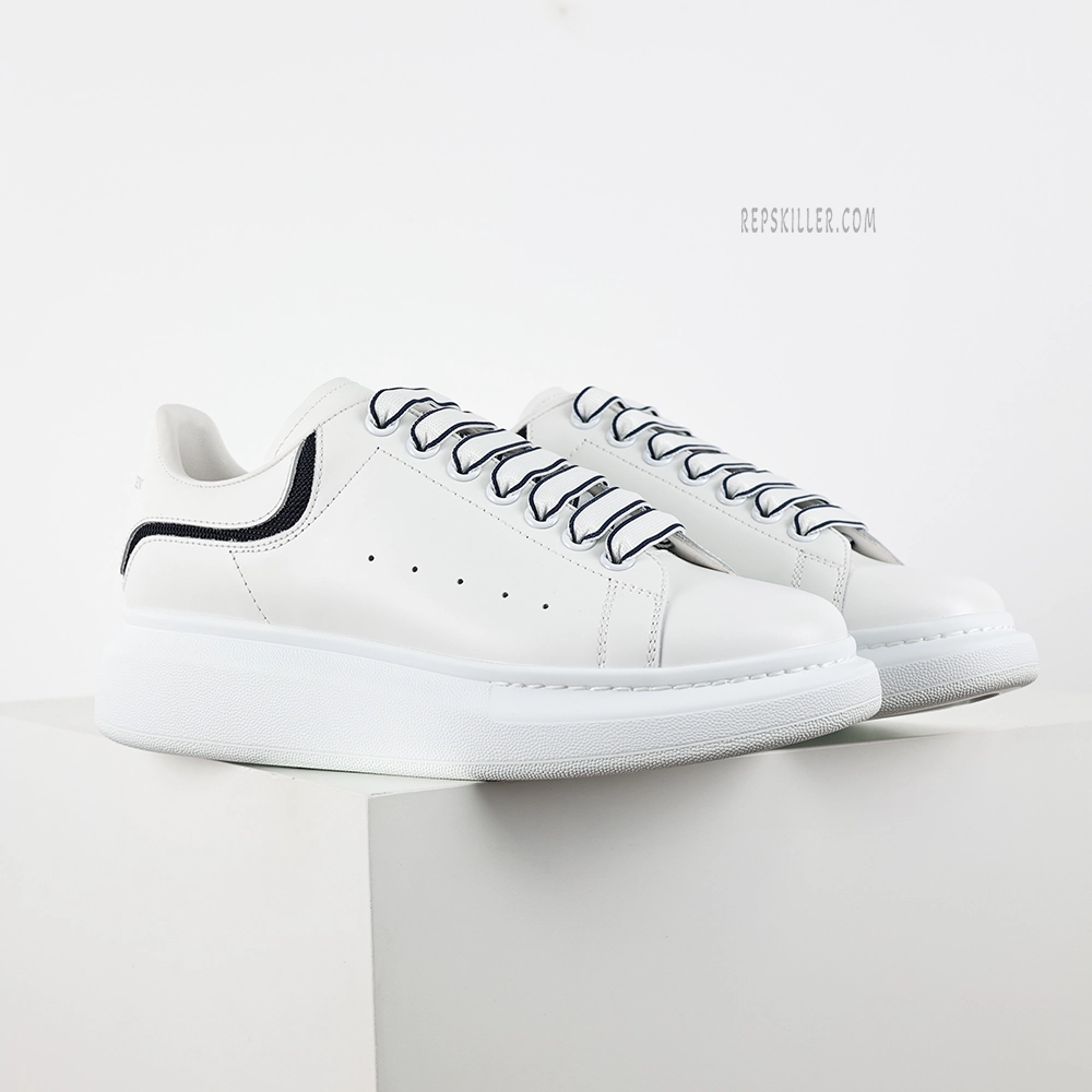 The MQ Oversized White Black Stripe Sneakers seamlessly blend luxury aesthetics with streetwear influences. Crafted from premium white calf leather, the upper showcases a clean silhouette accented by black stripe details, adding a touch of sophistication to the minimalist design. The signature oversized rubber sole not only provides excellent support and comfort but also enhances the overall design’s visual appeal. Subtle MQ branding is embossed on the tongue and heel counter, offering brand recognition without overwhelming the minimalist design. Ideal for various occasions, these sneakers effortlessly complement both casual and semi-formal outfits.