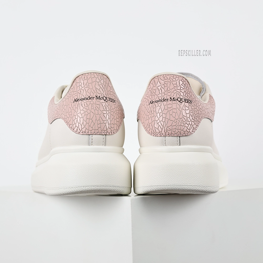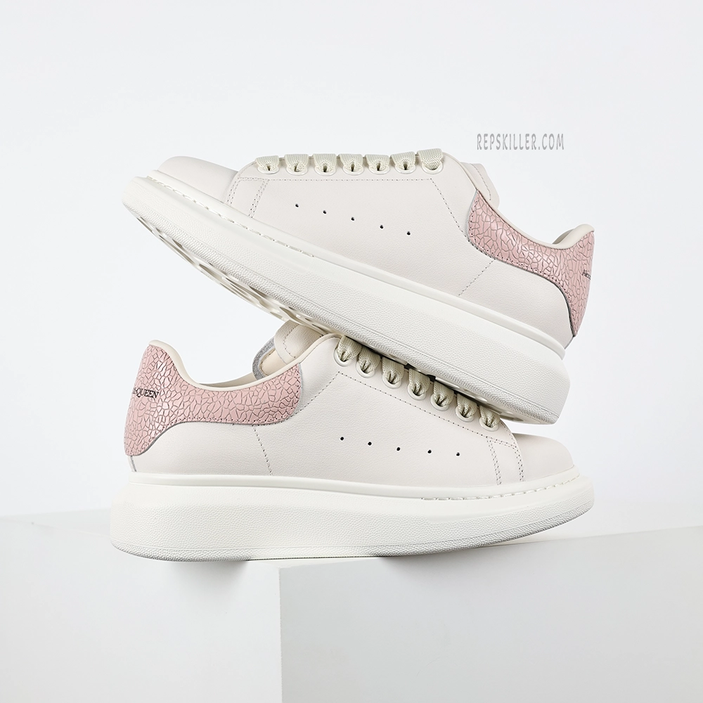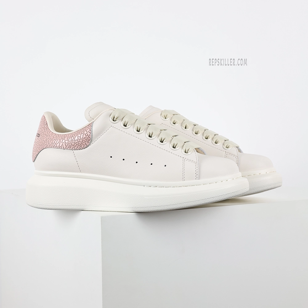 The MQ Oversized WMNS Off-White Sneakers Pink redefine contemporary footwear with their bold platform silhouette and refined detailing. The off-white full-grain leather upper offers a soft, structured profile that adapts to versatile styling. Subtle ventilation perforations along the sides enhance comfort and echo minimalist design principles. At the heel, a cracked pink leather tab introduces contrast and feminine nuance. Signature MQ debossed logos appear at the tongue and heel, reinforcing brand identity without excess. A chunky yet lightweight outsole completes the look with added height and a smooth ride for day-long wear.