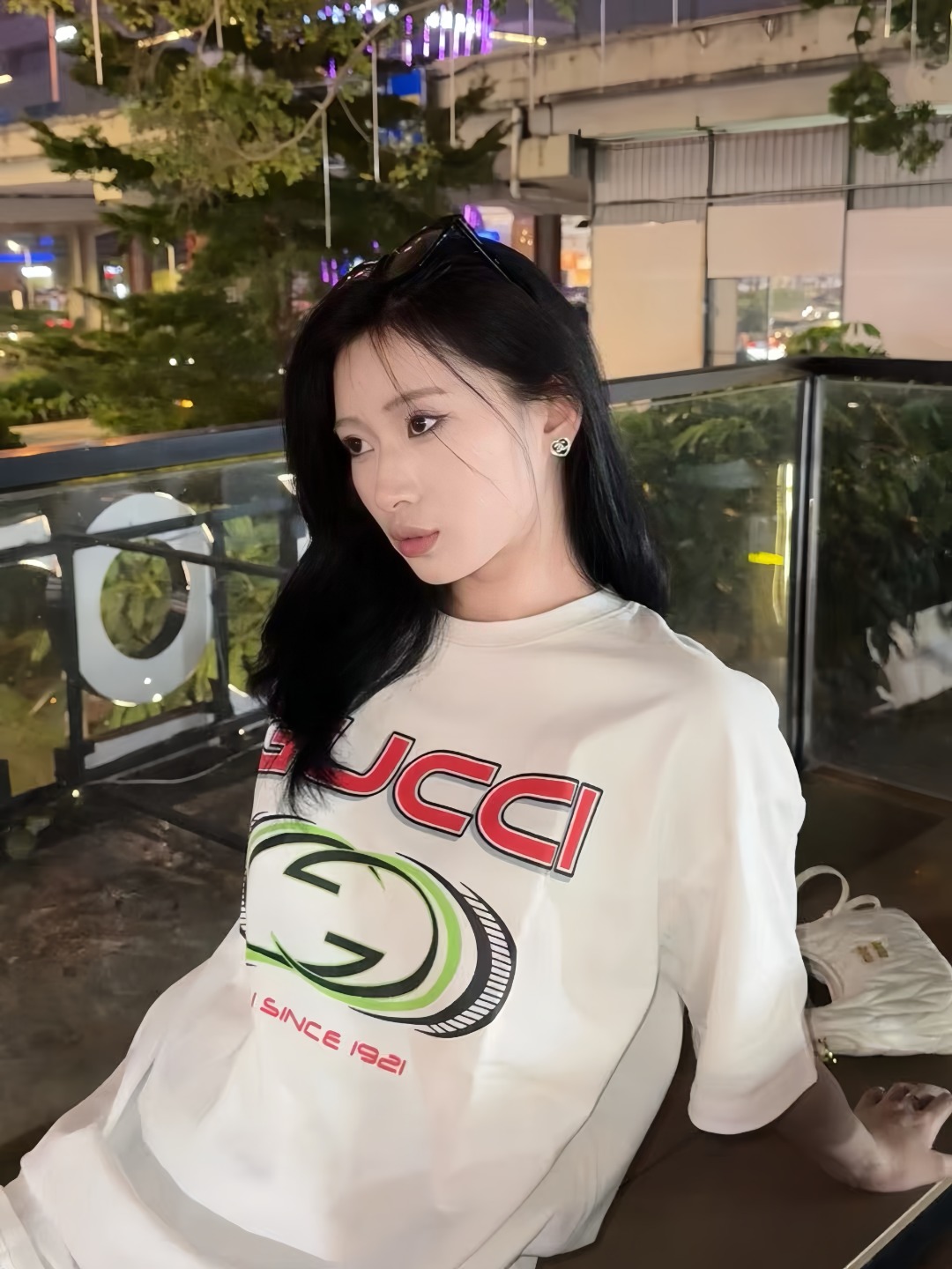 This short-sleeve T-shirt features an all-over print of various stylized G-letter designs, blending vintage aesthetics with modern elements, creating a distinctive luxury streetwear look. Crafted from premium cotton fabric, it offers a soft, breathable, and comfortable fit. The standard fit with a classic crewneck design makes it suitable for casual everyday wear while allowing for versatile styling. Whether worn alone or layered with a jacket, this piece effortlessly embodies a timeless yet trendy appeal.
