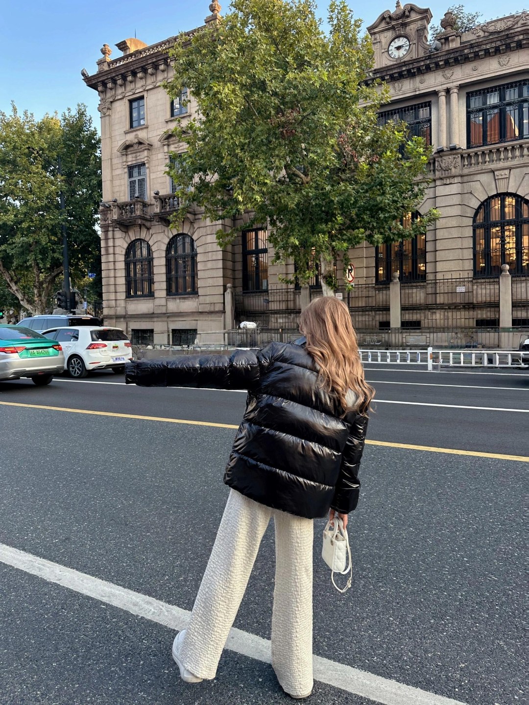 The Mxxcler Abbadia Short Quilted Down Jacket #MT-2066 features a sleek glossy black finish that delivers a clean, modern aesthetic with strong visual impact. Designed with a cropped silhouette, the jacket balances contemporary style and functional warmth, making it ideal for both urban commuting and casual everyday wear.