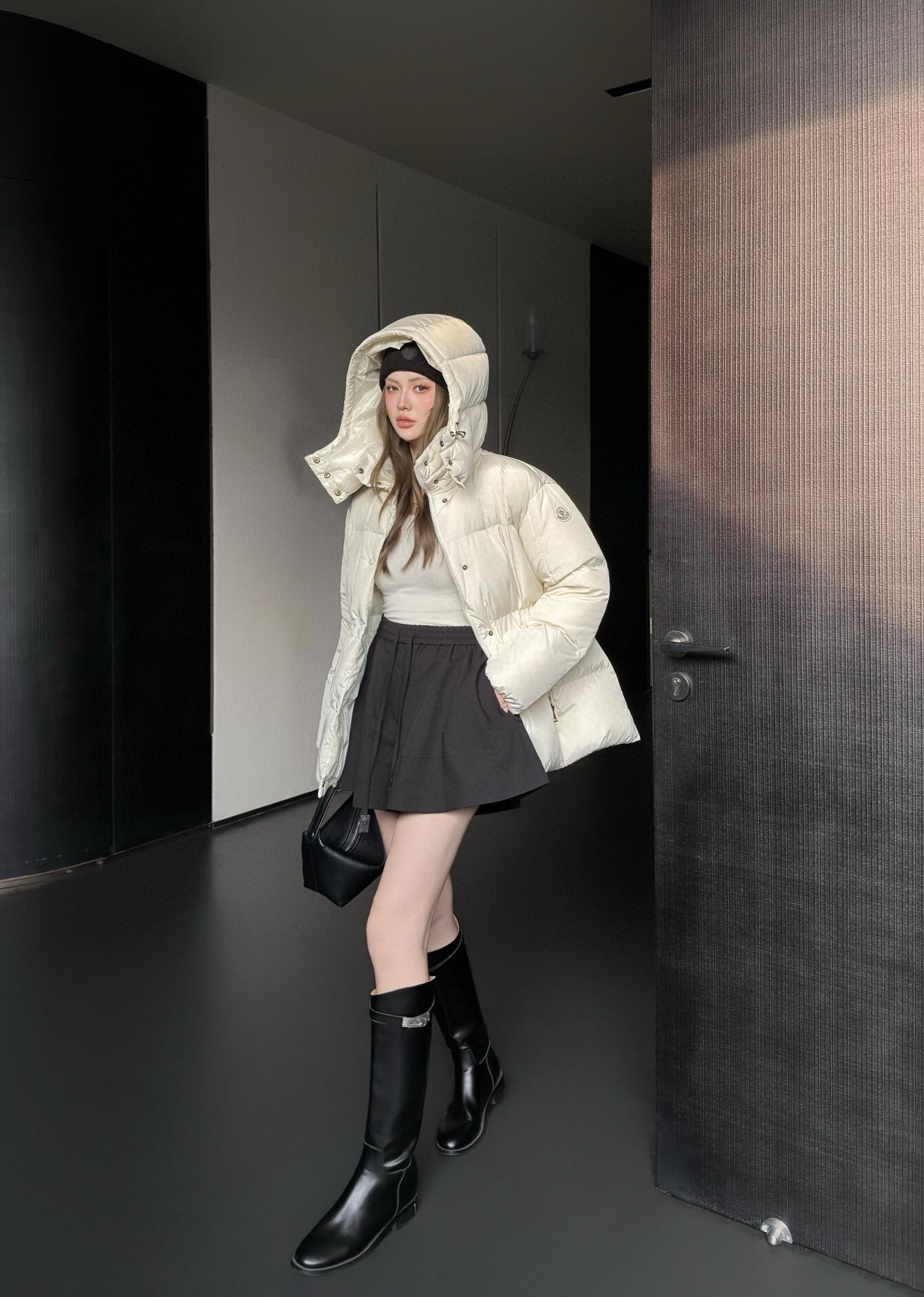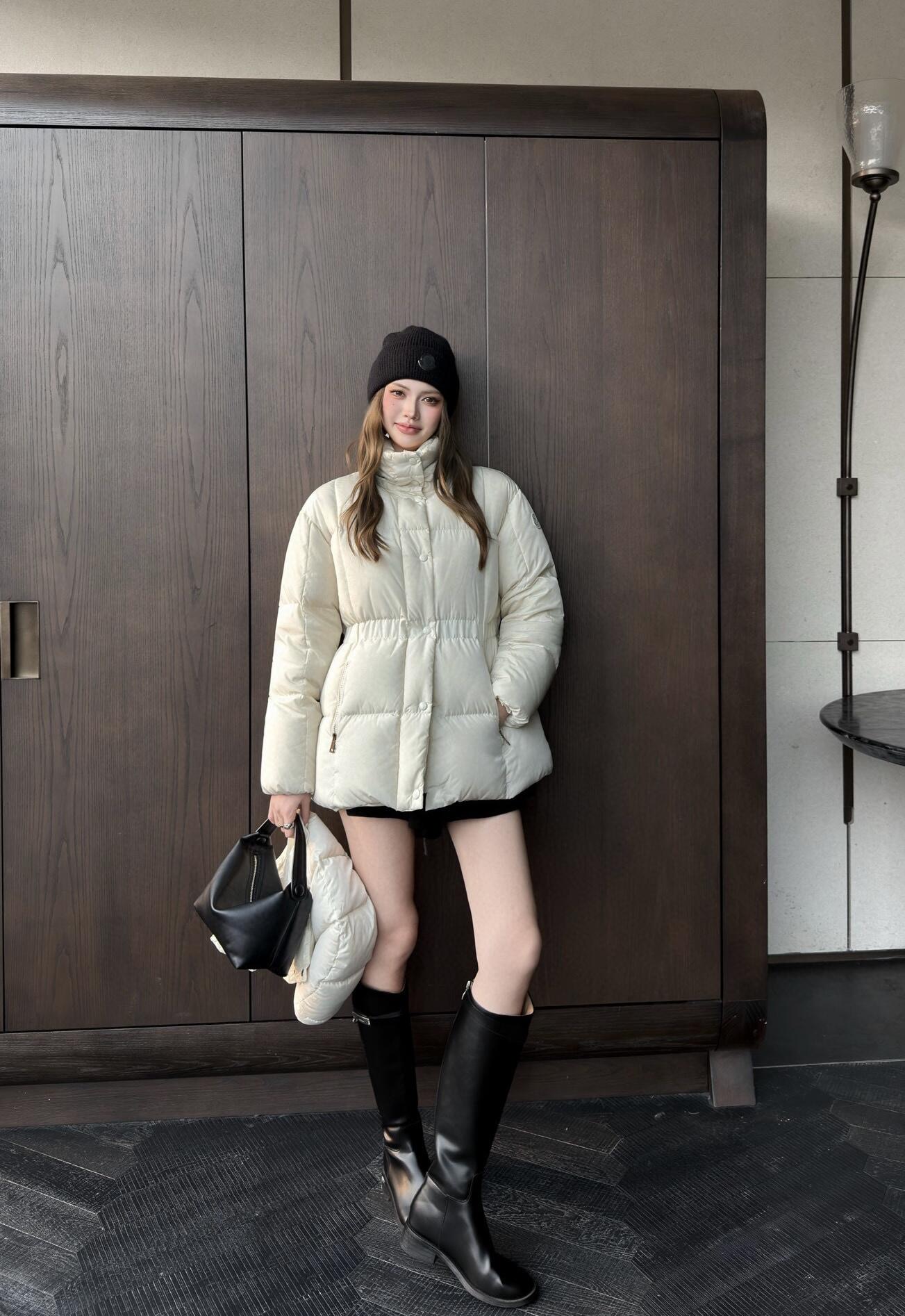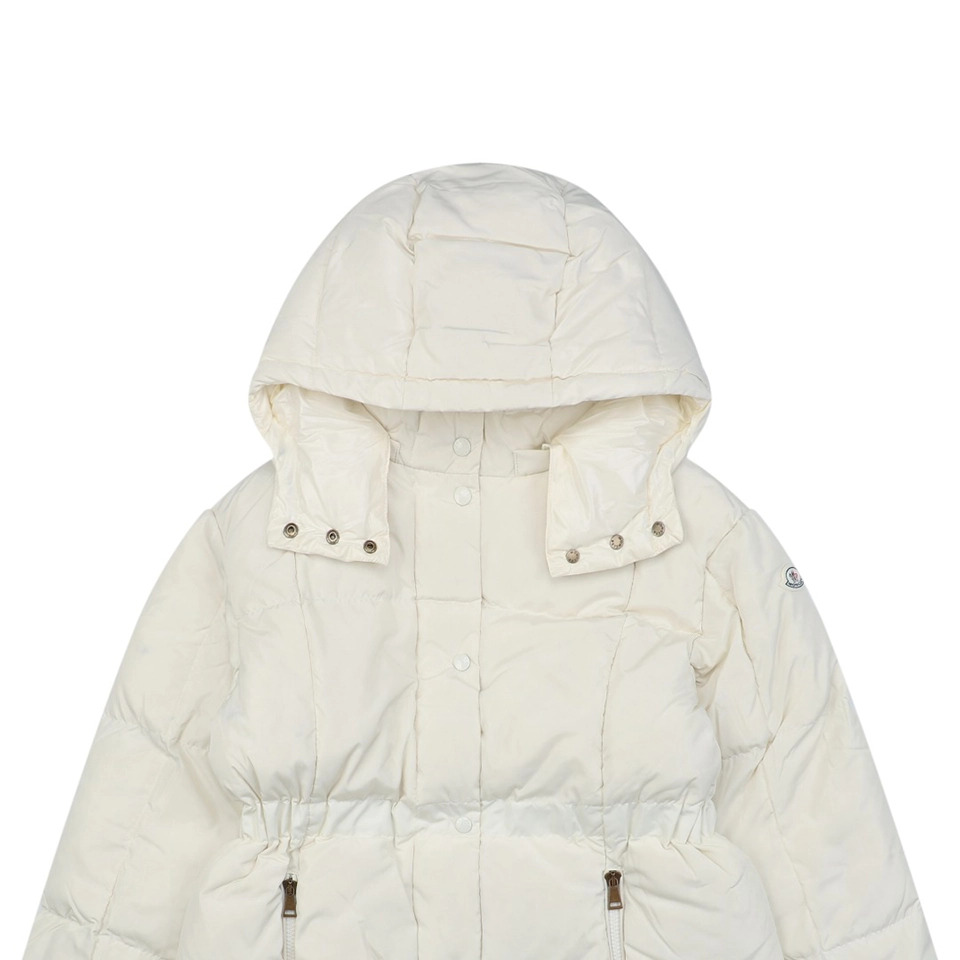Featuring Longuesaison lining, the jacket achieves exceptional lightness while maintaining impressive insulation. Filled with premium white duck down, it ensures warmth, comfort, and reliable cold-weather protection. The detachable and adjustable hood provides versatile styling options, while the cinched waist subtly enhances the wearer’s shape for a more flattering fit.