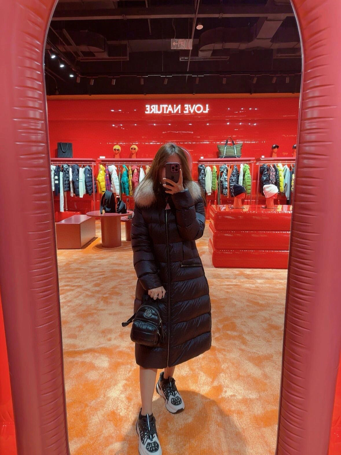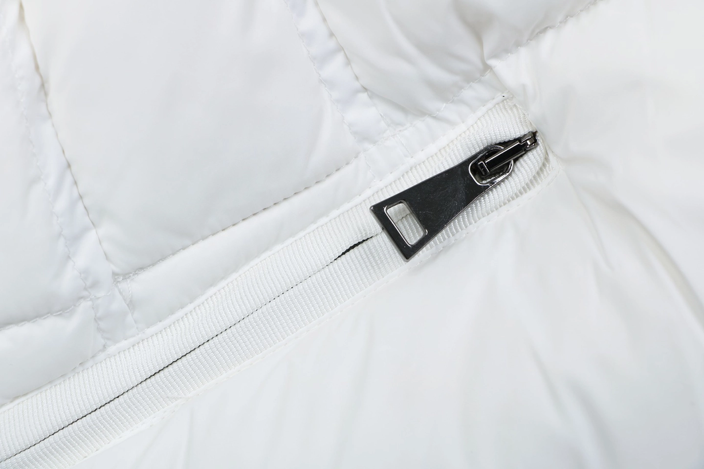 The design is elevated by a detachable fox fur-trimmed hood, offering both luxurious texture and enhanced wind protection. A slim elastic belt cinches the waist to create a flattering, sculpted silhouette, while the long quilted structure ensures optimal heat retention. Finished with a two-way zip closure, ribbon-accented zip pockets, elastic cuffs, and brand-correct trims, this down jacket delivers both visual sophistication and everyday functionality. Filled with high-quality white duck down, it is suitable for daily wear, commuting, or cold-weather styling. Unisex design with custom-developed brand tags.