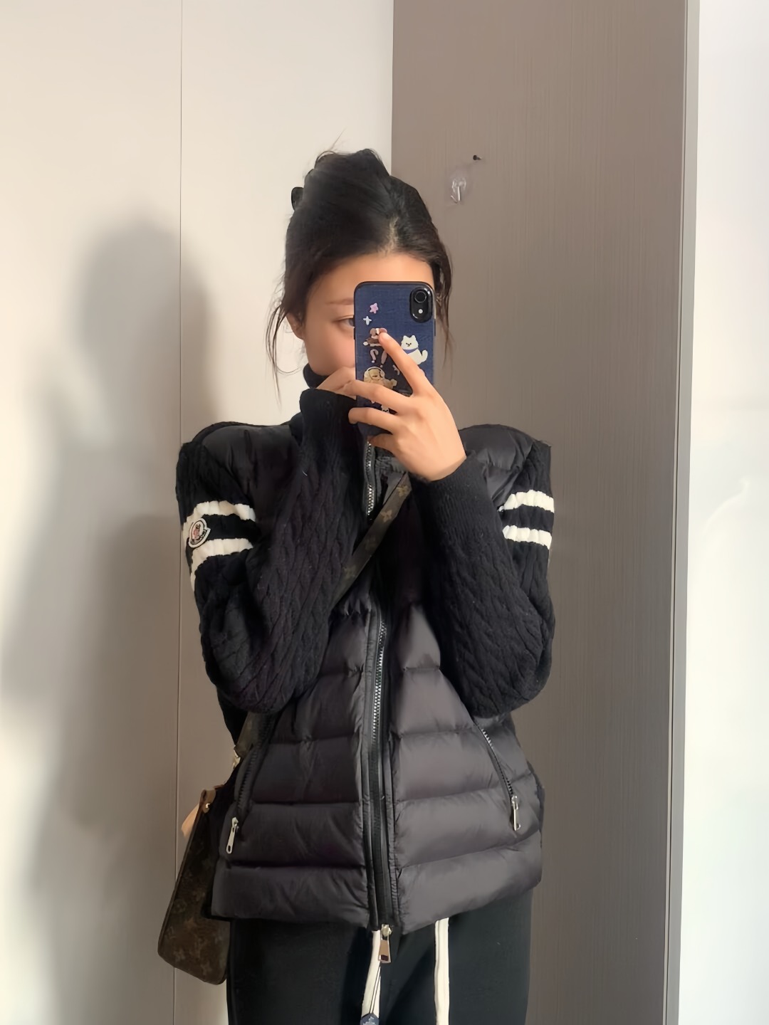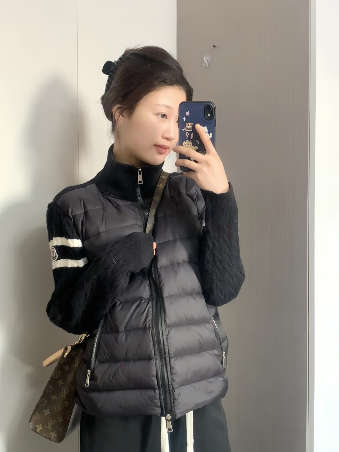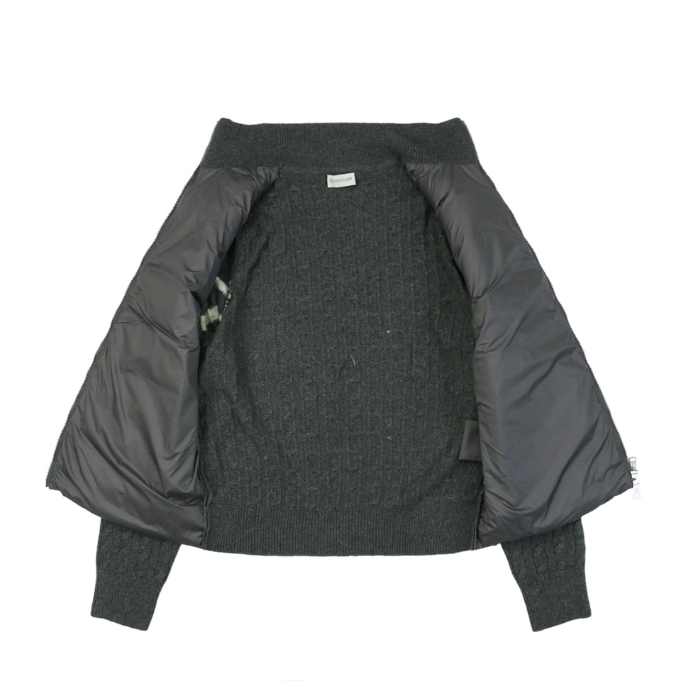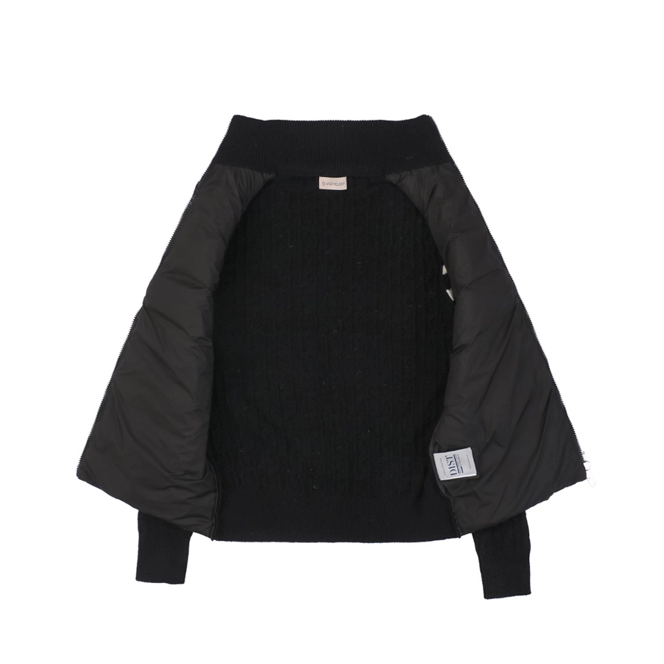 The Mxxcler Double-Stripe Sleeve Panel Down Jacket is a refined fusion of sports-inspired knitwear and high-performance down insulation. Featuring a quilted nylon front for warmth and contrast cable-knit sleeves in wool blend, this hybrid design delivers the comfort of a sweater with the functionality of outerwear. Signature double-stripe intarsia detailing on the sleeves and the Mxxcler logo patch on the arm add a distinctive finishing touch. Whether worn solo or layered, this piece is ideal for transitional weather or urban winter styling.