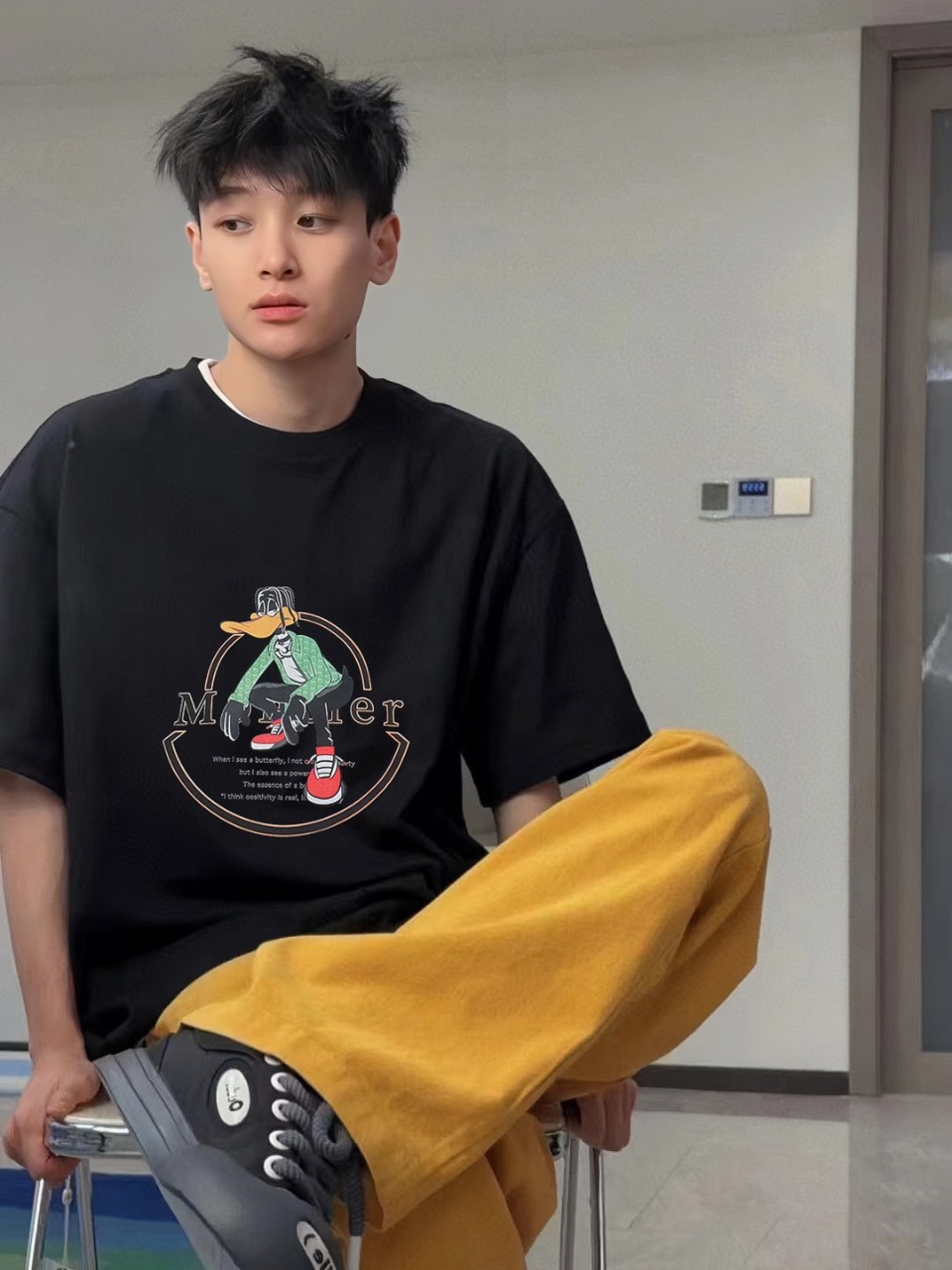 The Mxxcler Dreadlock Duck Character Print T-Shirt features a bold cartoon graphic of a street-style duck with dreadlocks, sunglasses, and accessories, bringing together humor, attitude, and high-fashion flair. The exaggerated illustration reflects urban identity with playful irreverence, showcasing Mxxcler’s ability to merge luxury and street culture. Made from soft, breathable cotton in a relaxed fit, this piece is both a statement and a staple in modern casualwear.