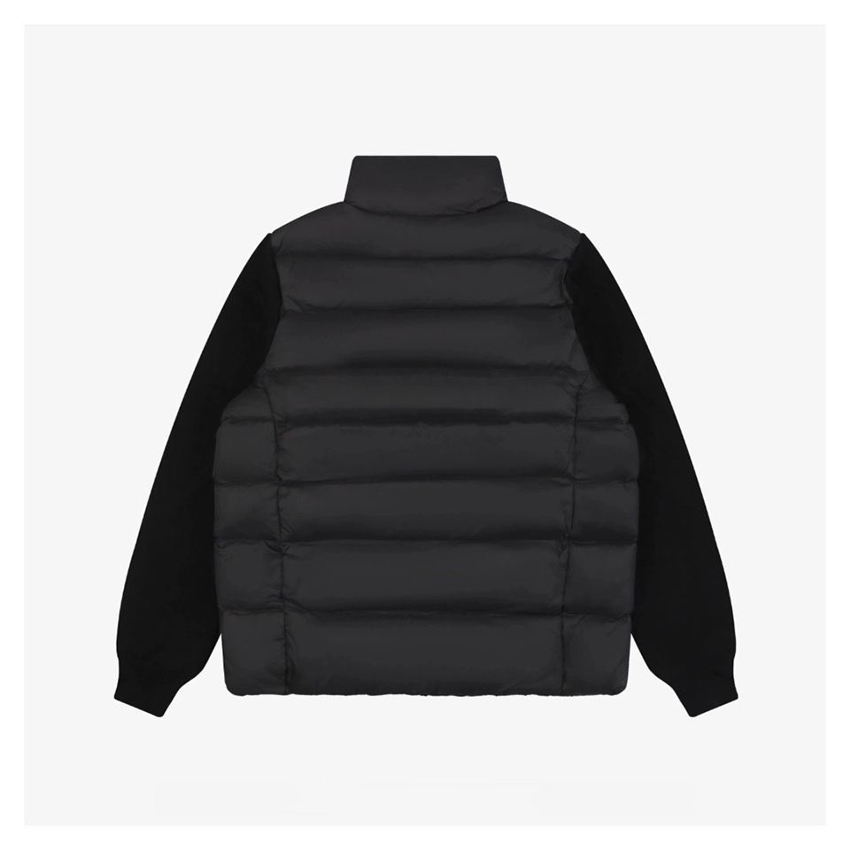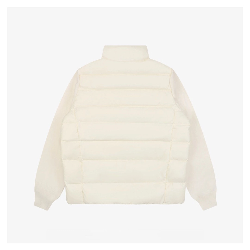 The Mxxcler Irregular Panel Quilted Down Jacket blends premium materials with a distinctive mixed-fabric design. The glossy nylon front is quilted and filled with high-quality white duck down for superior warmth, while the knitted sleeves add contrast and comfort. Cut in a regular silhouette, the jacket delivers a clean, modern look that suits both men and women. Stylish, lightweight, and highly wearable, it elevates any winter outfit effortlessly.