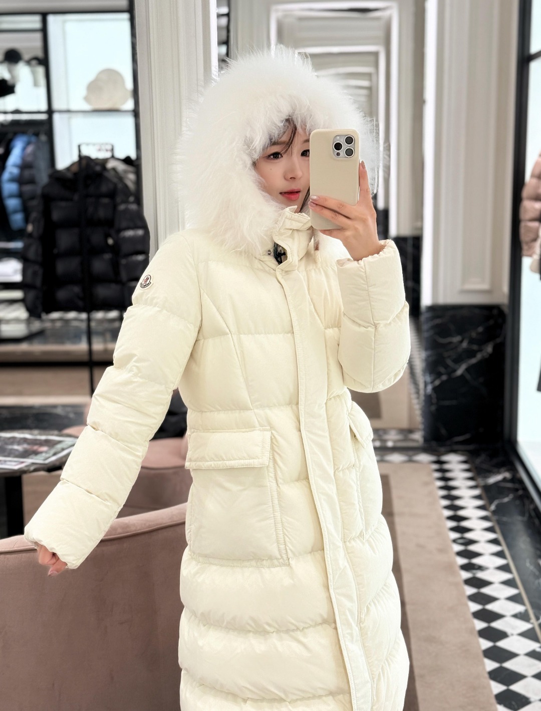 Filled with premium white duck down, the jacket offers excellent insulation while maintaining a lightweight and structured feel. The tailored waist design enhances the overall shape, preventing bulkiness and creating a flattering, elegant profile. Multiple functional pockets add practicality, while the signature Moncler logo patch completes the look with refined brand recognition. Ideal for commuting, daily wear, and winter styling, this unisex down jacket balances fashion appeal with functional performance.