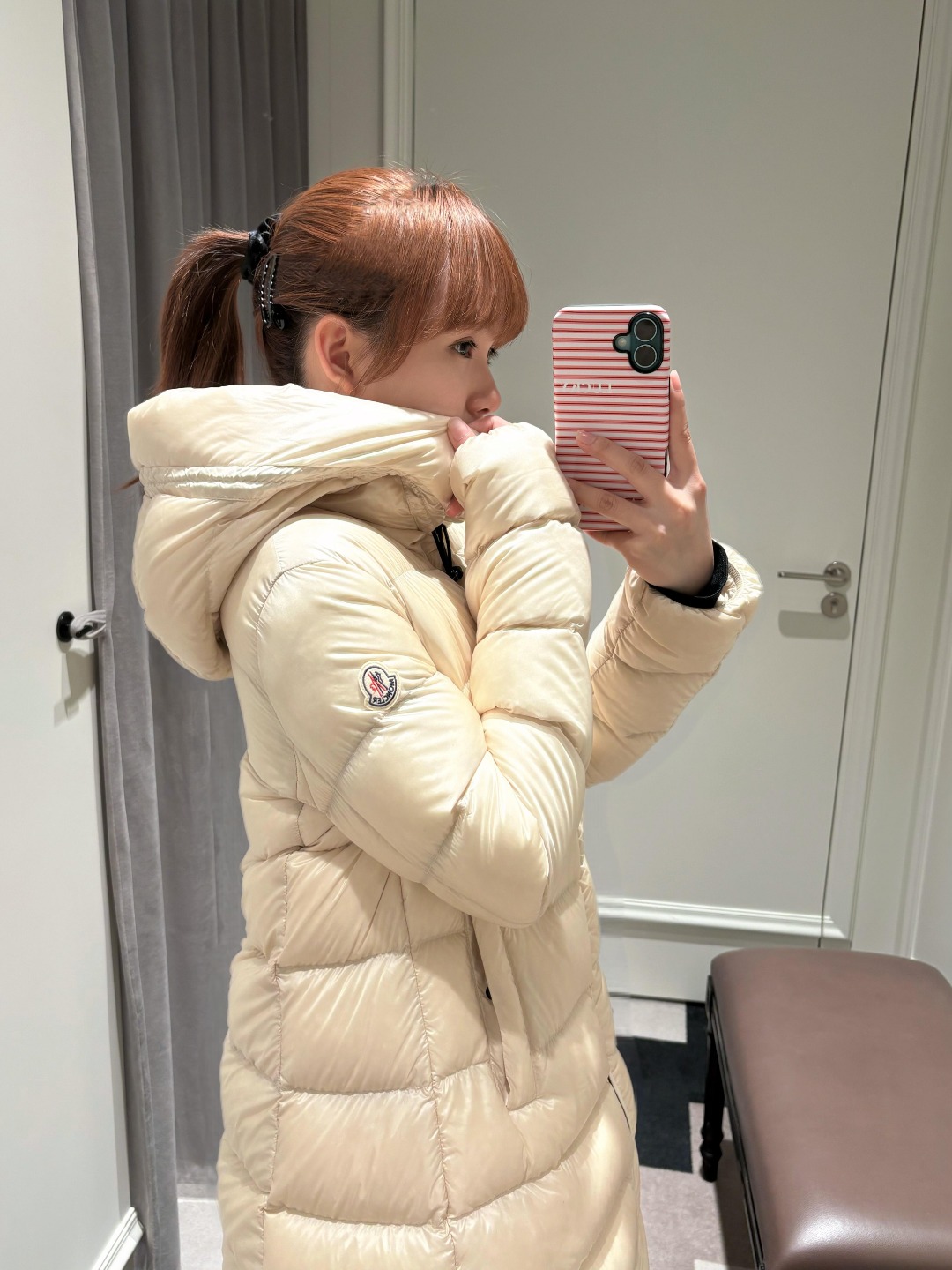 Designed with a mid-length silhouette and classic horizontal quilting, the Suyenne jacket creates a soft, flowing A-line shape. The fitted upper body transitions naturally into a gently flared hem, enhancing proportions and reducing the bulky appearance often associated with down jackets. The structured quilting ensures even insulation distribution, preserving a full yet streamlined silhouette.