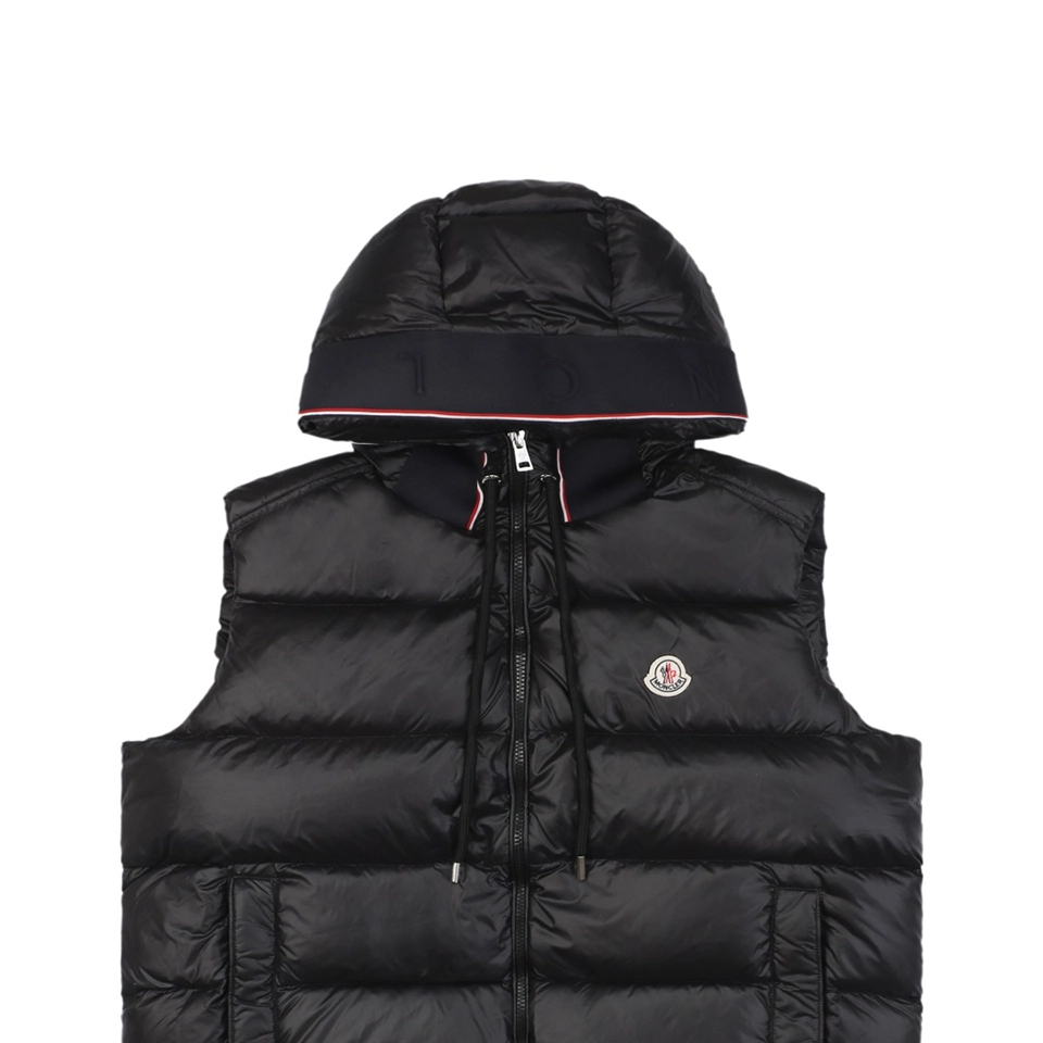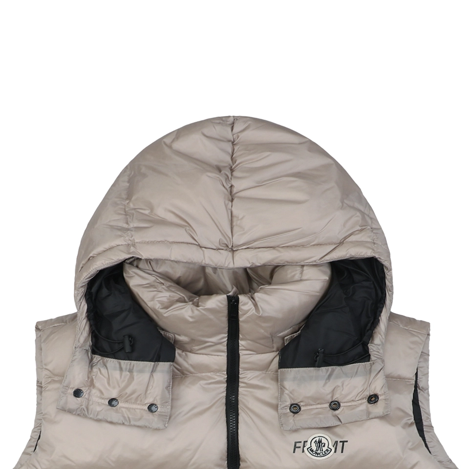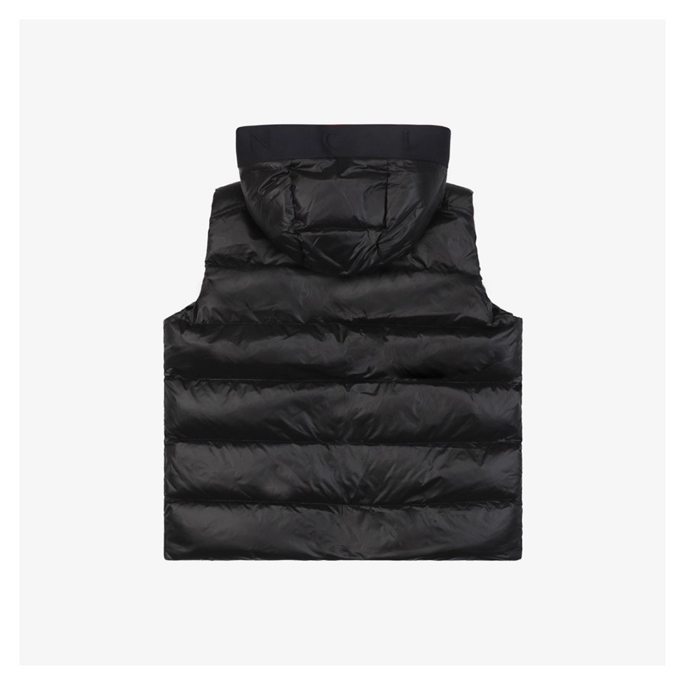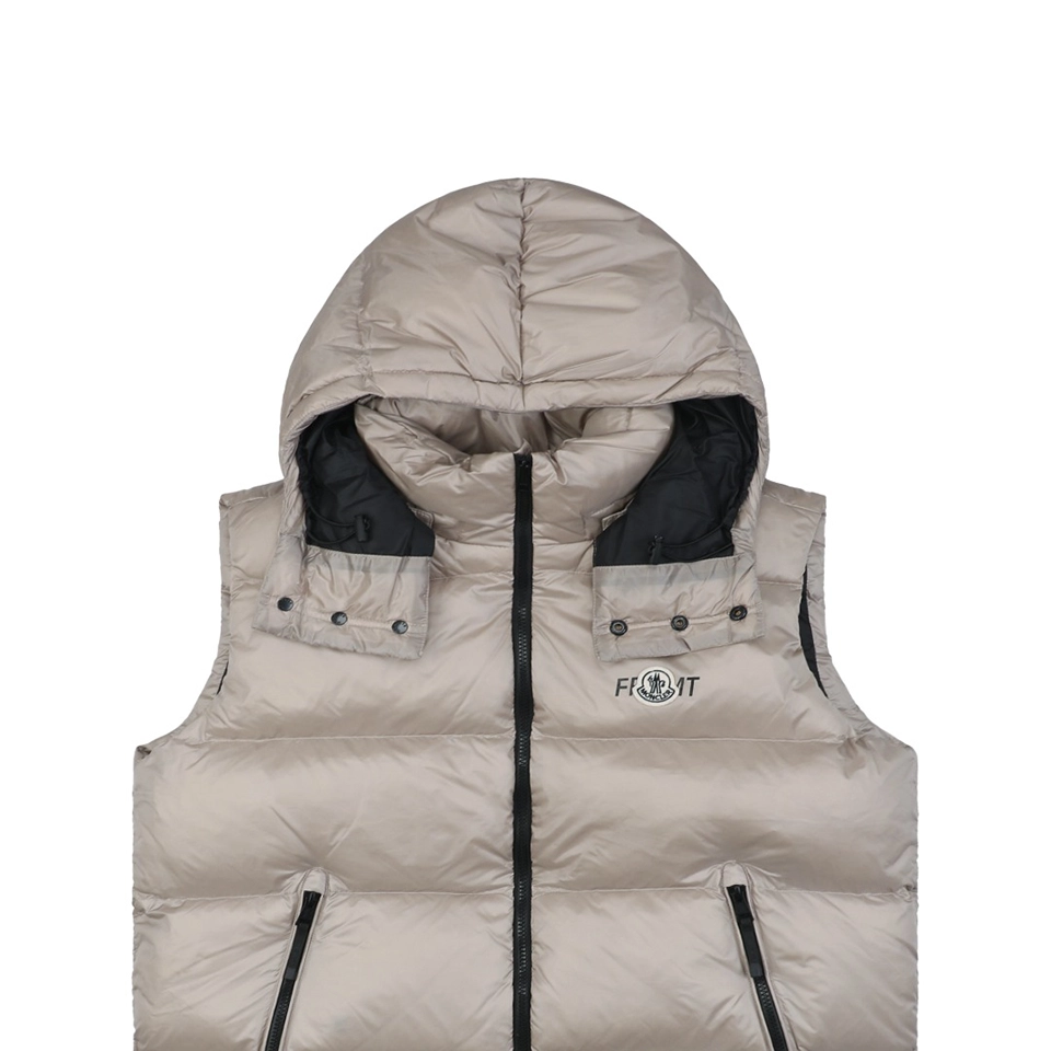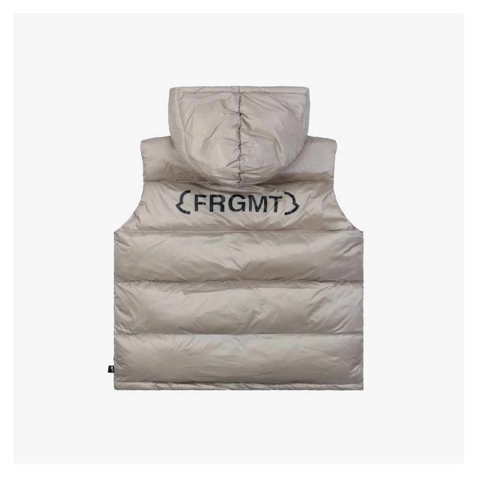 This FRGMT x Mxxcler Webbing Hooded Down Vest blends minimalistic street aesthetics with functional design. Crafted with a premium mix of LIMONTA glossy nylon and recycled nylon, the piece delivers a refined texture while embracing sustainability.