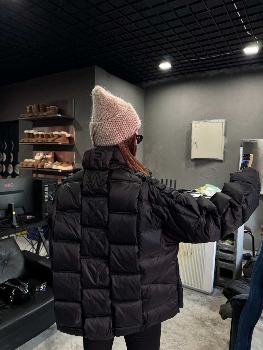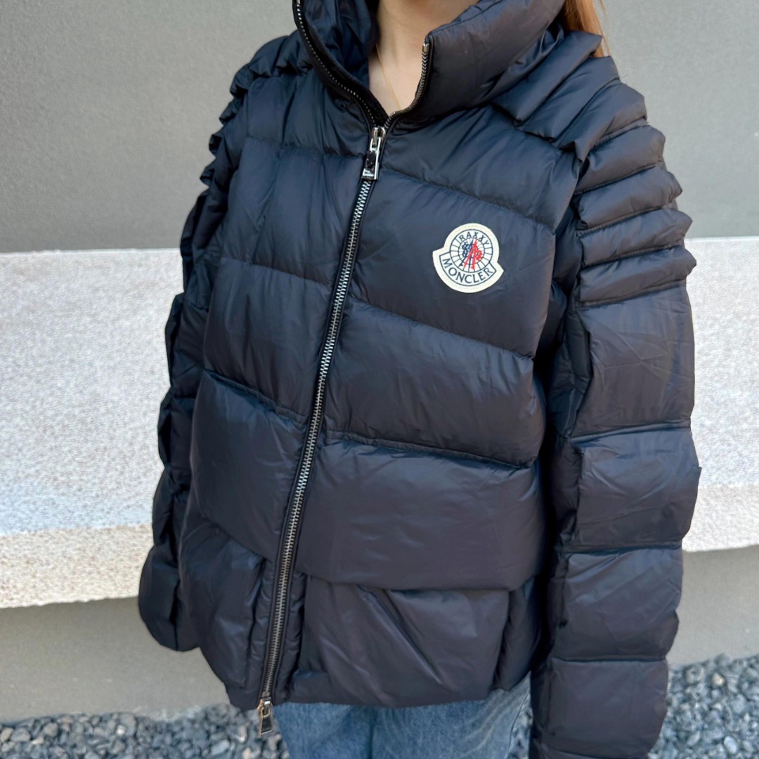 The Mxxcler x Fragment 3D Quilted Down Jacket features a distinctive three-dimensional quilted design on the back, forming bold raised lettering that reinforces its collaborative identity. Constructed from lightweight yet insulating down-filled nylon, the jacket offers outstanding warmth without excessive bulk. The front remains clean and minimal, highlighted by the iconic Mxxcler felt logo patch on the chest. A high stand collar and full-zip closure enhance wind protection, while the boxy, slightly cropped silhouette adds a modern street-style edge. This piece perfectly blends technical performance with fashion-forward detailing.