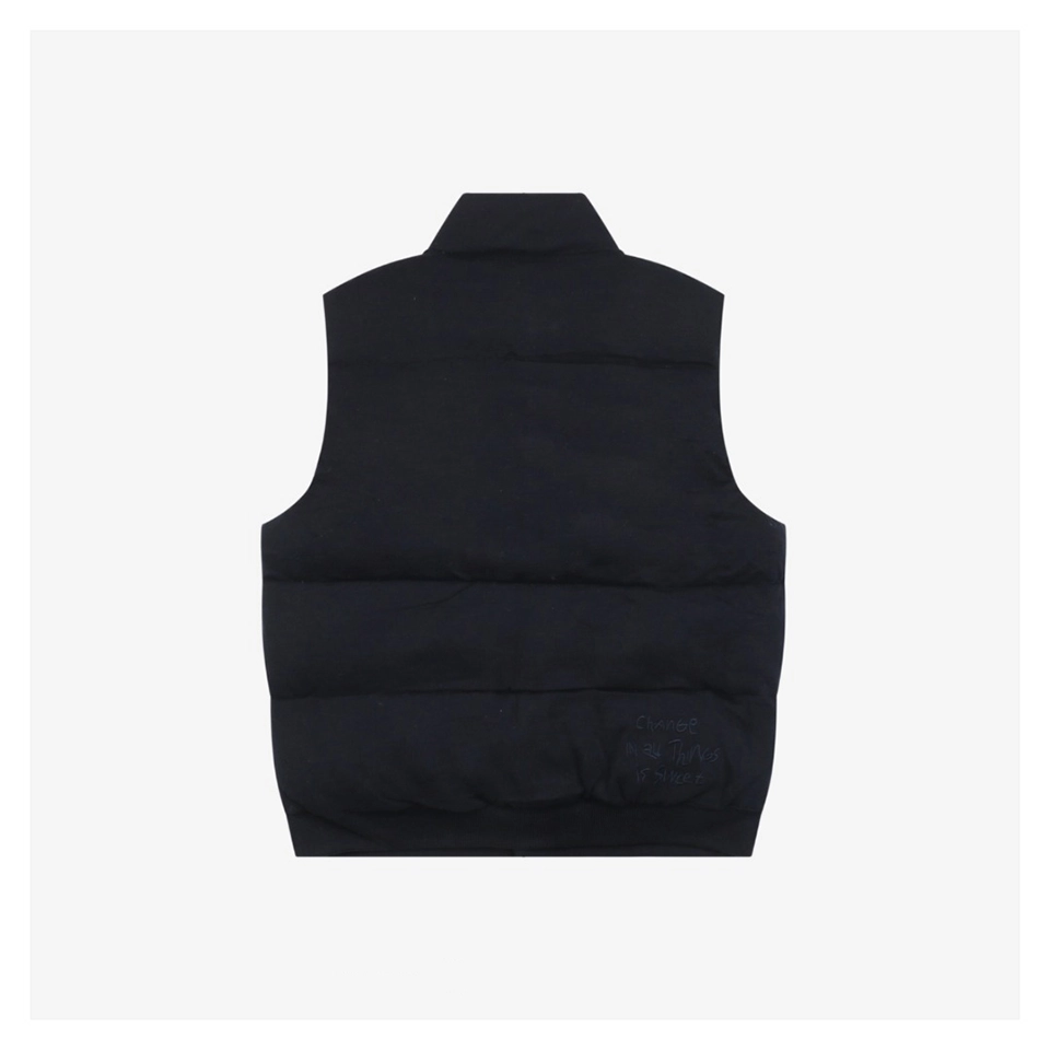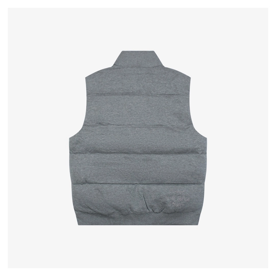 Crafted from twist-dyed pure cotton knit, the vest offers both comfort and structure, making it suitable for everyday wear while maintaining a refined street–luxury attitude. The premium down filling ensures lightweight warmth, ideal for transitional seasons or layering during colder weather.