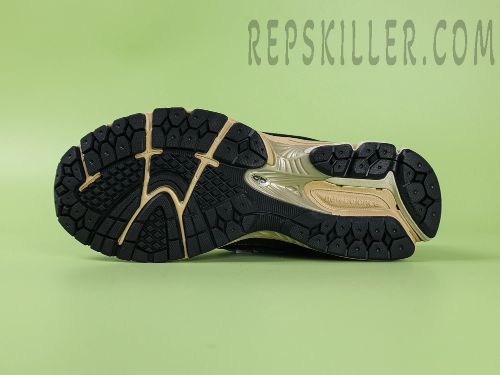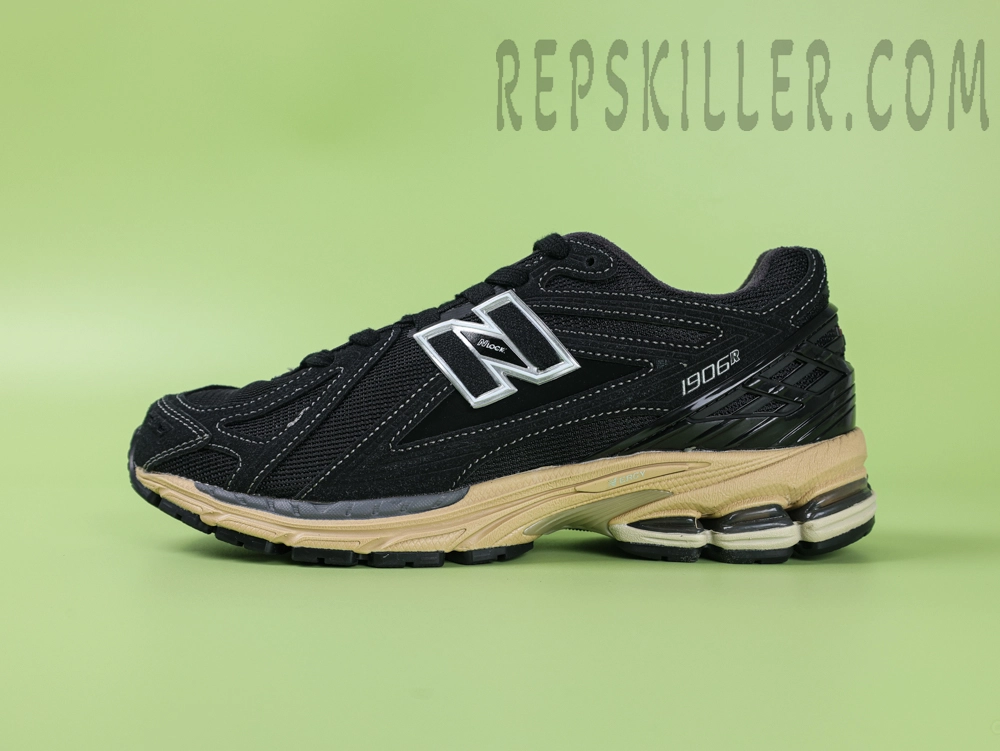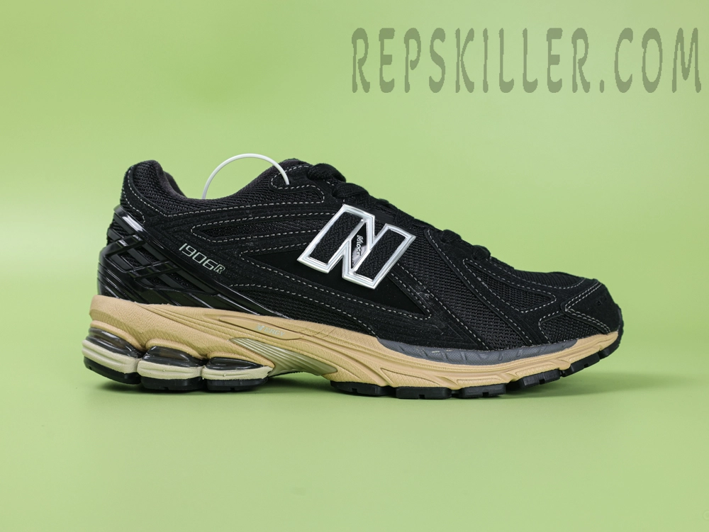 The New Balance 1906R ‘Black Taos Taupe’ is a sneaker that seamlessly blends retro aesthetics with modern technology, offering exceptional comfort and style. The upper features black breathable mesh complemented by asymmetrical black suede overlays, enhancing texture and support. The iconic ‘N’ logo on the side harmonizes with the overall color scheme, adding brand recognition. The midsole, presented in a cream hue, combines ACTEVA LITE cushioning material with ABZORB SBS technology, delivering superior shock absorption. N-ergy technology extends throughout the midsole and outsole, boosting responsiveness and durability. Additionally, the Stability Web outsole technology provides extra arch support, ensuring stability and comfort with every step.