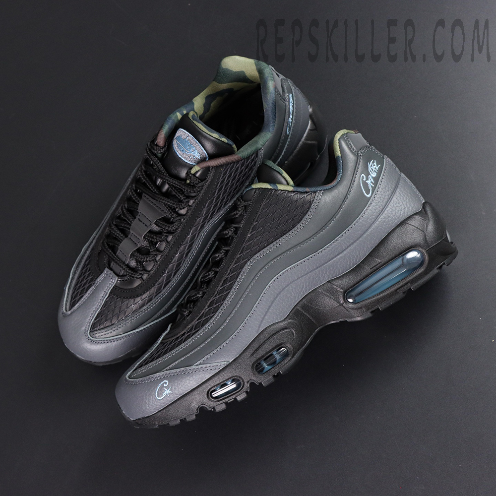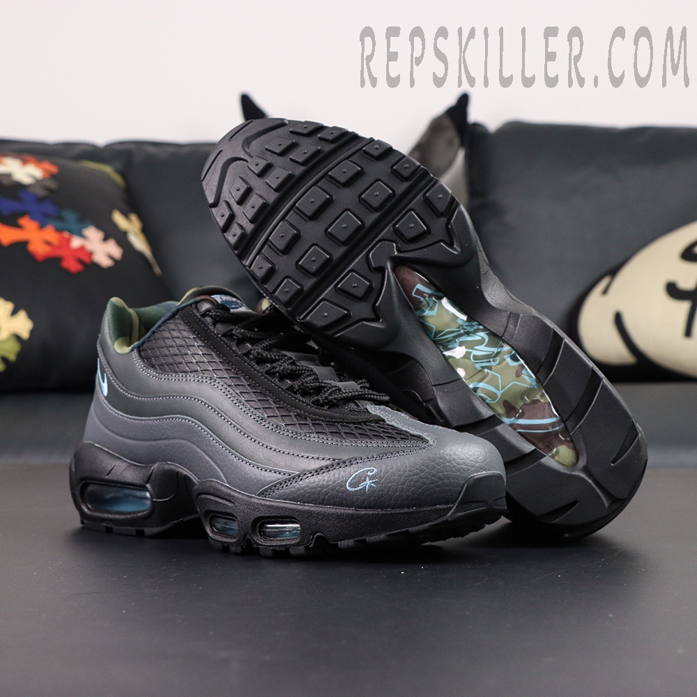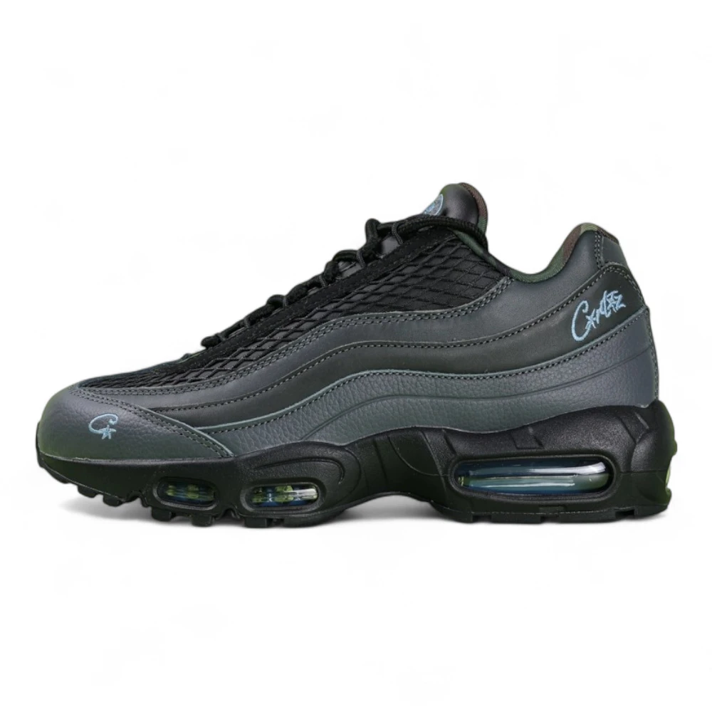 Nike Air Max 95 SP × Corteiz “Aegean Storm” revamps the classic silhouette with layered mesh and tonal synthetic panels, echoing retro-futuristic streetwear. The sleek black and anthracite palette is punctuated by signature Corteiz branding on the heel and forefoot. Tuned Air units in the sole ensure responsive cushioning, while the sculpted midsole adds structure and bold visual rhythm.
