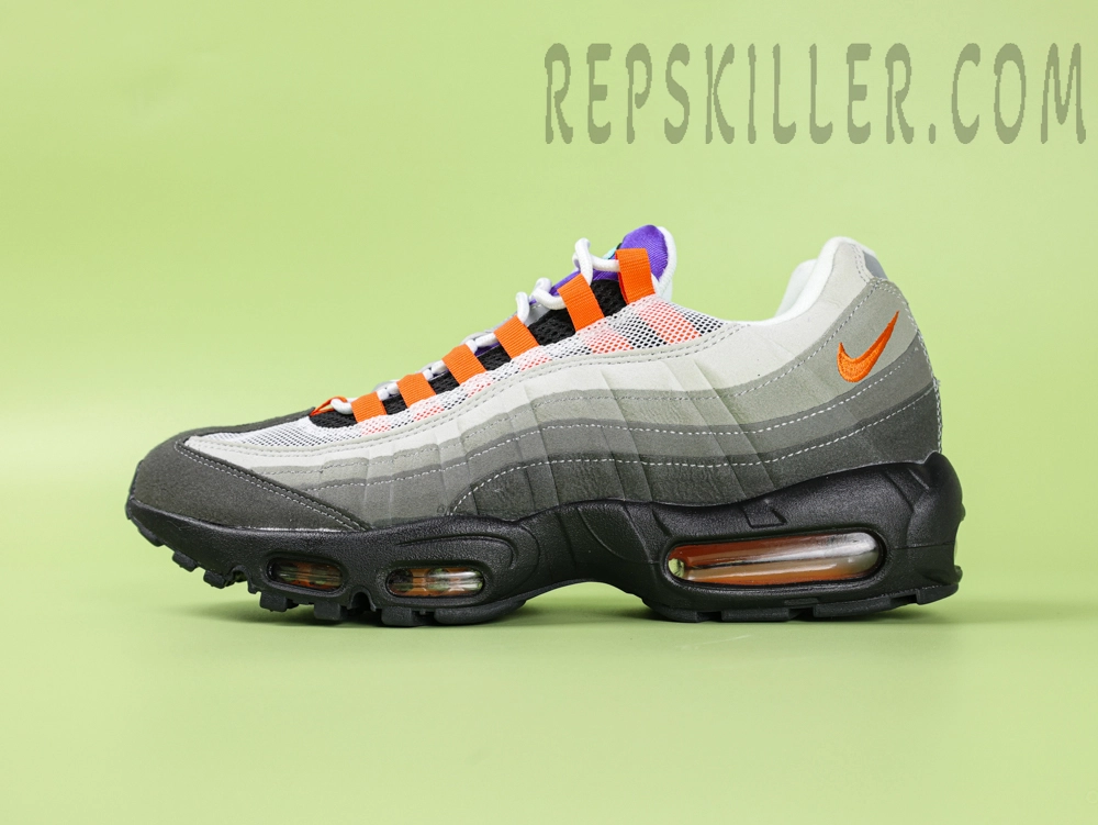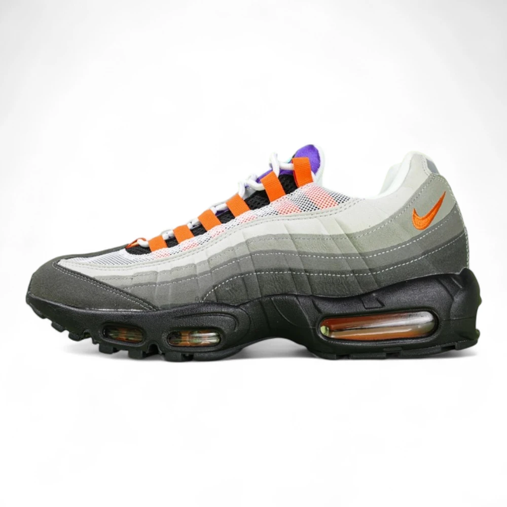 The Nike Air Max 95 TT “Greedy” blends together iconic elements from multiple original AM95 colorways like “Neon,” “Hot Red,” and “Grape.” With mismatched medial and lateral sides, it challenges symmetry while honoring Air Max legacy. Gradient mesh, bold side overlays, and visible Air units complete the silhouette—equal parts nostalgia and innovation.