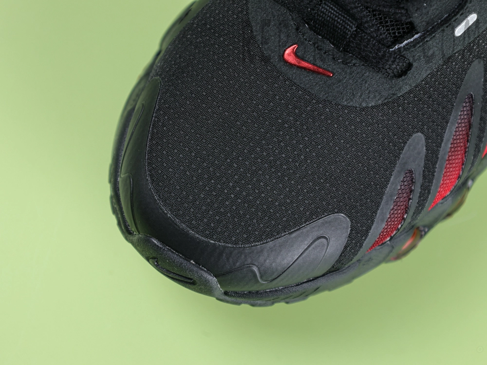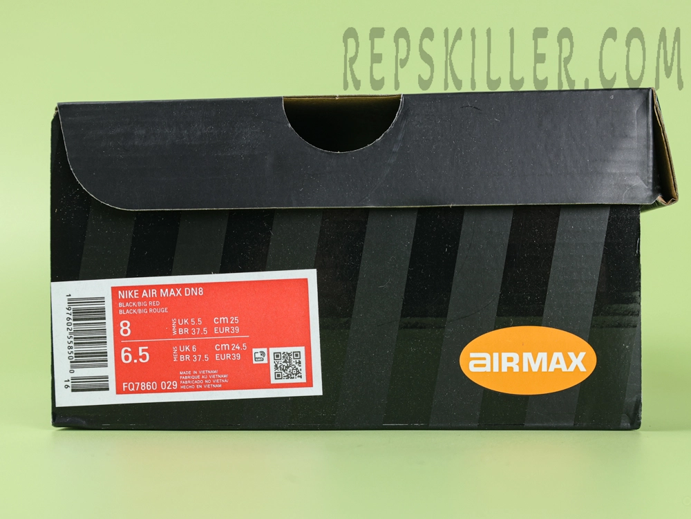 The Nike Air Max DN8 “Black/Big Red” is the latest addition to Nike’s Air Max lineup. This shoe combines innovative Dynamic Air technology with a stylish design. The upper features a classic black and big red color scheme, creating a striking visual impact. The full-length Dynamic Air system consists of eight air chambers, providing exceptional cushioning and responsiveness. Crafted from lightweight mesh materials, the upper ensures breathability and comfort. The rubber outsole enhances durability and traction, making it suitable for various occasions.
