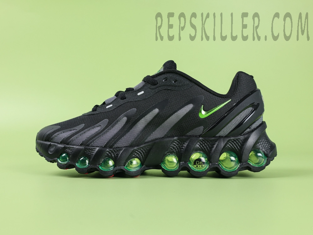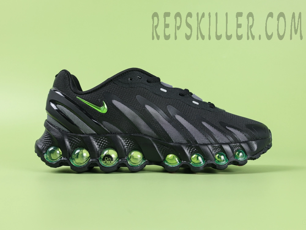 The Nike Air Max DN8 “Black/Volt” is the latest addition to Nike’s Air Max lineup, combining innovative Dynamic Air technology with a stylish design. The upper features a classic black and Volt green color scheme, creating a striking visual impact. The full-length Dynamic Air system consists of eight air chambers, providing exceptional cushioning and responsiveness. Crafted from lightweight mesh materials, the upper ensures breathability and comfort. The rubber outsole enhances durability and traction, making it suitable for various occasions.