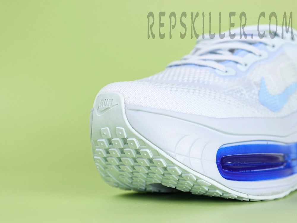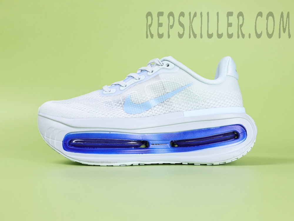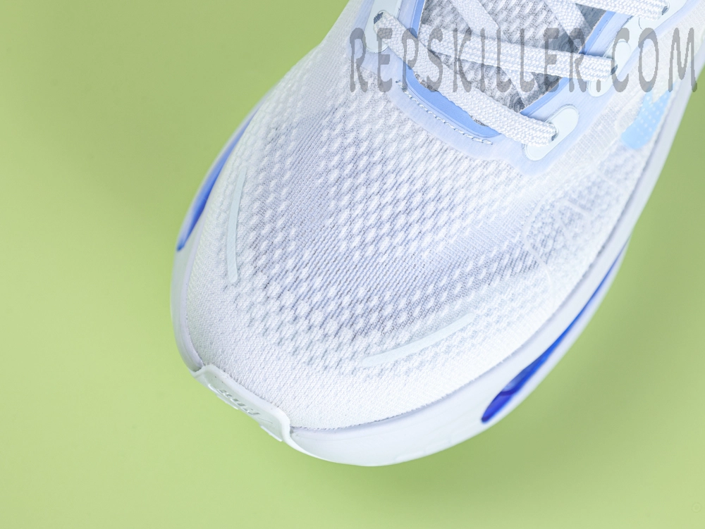 The Nike Air Zoom Pegasus Premium Ice Blue offers a refined approach to performance with its visible full-length Air Zoom unit, now presented in a striking blue tint. This sleek running shoe fuses the trusted Pegasus cushioning platform with inspiration from the Vaporfly series, including a curved midsole geometry that improves energy transition. The crisp ice blue Swoosh and Air unit contrast beautifully against the clean white engineered mesh upper, delivering both breathability and style.