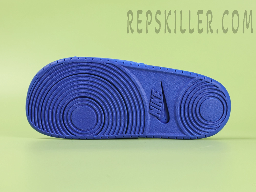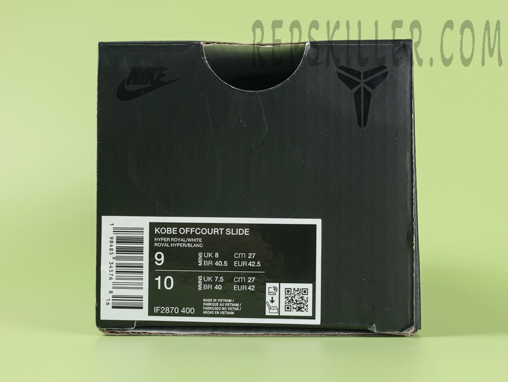 The Nike Kobe Offcourt Slide “Dodgers” features a striking Hyper Royal blue colorway with white Kobe branding, paying homage to the Los Angeles Dodgers. The strap showcases a snakeskin texture, reflecting Kobe’s “Black Mamba” persona. The EVA foam sole ensures comfort, making it ideal for casual wear or post-game relaxation.