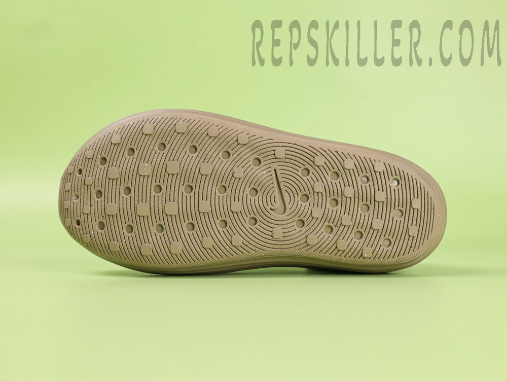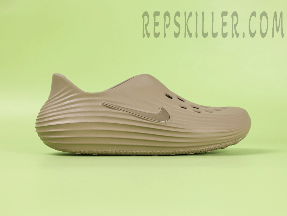 The Nike ReactX Rejuven8 “Khaki” redefines recovery footwear with a sculpted silhouette molded from ultra-lightweight ReactX foam. Designed for everyday ease, the slide combines breathable ventilation ports across the forefoot with a ridged, aerodynamic sidewall. A subtle tonal Swoosh is seamlessly integrated into the structure, maintaining a futuristic and minimal aesthetic. Perfect for post-run recovery or casual daily wear, this mule delivers responsive cushioning and slip-on convenience in a muted khaki finish.