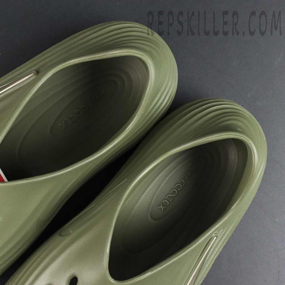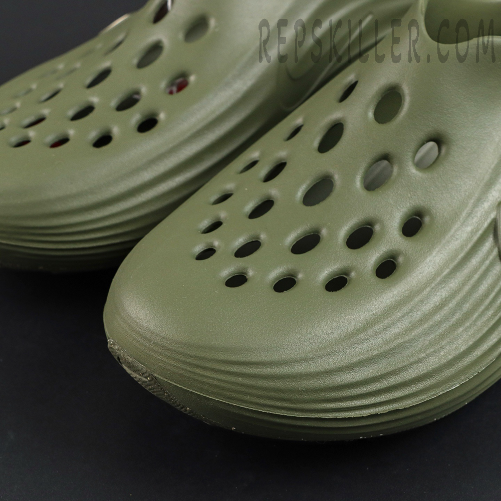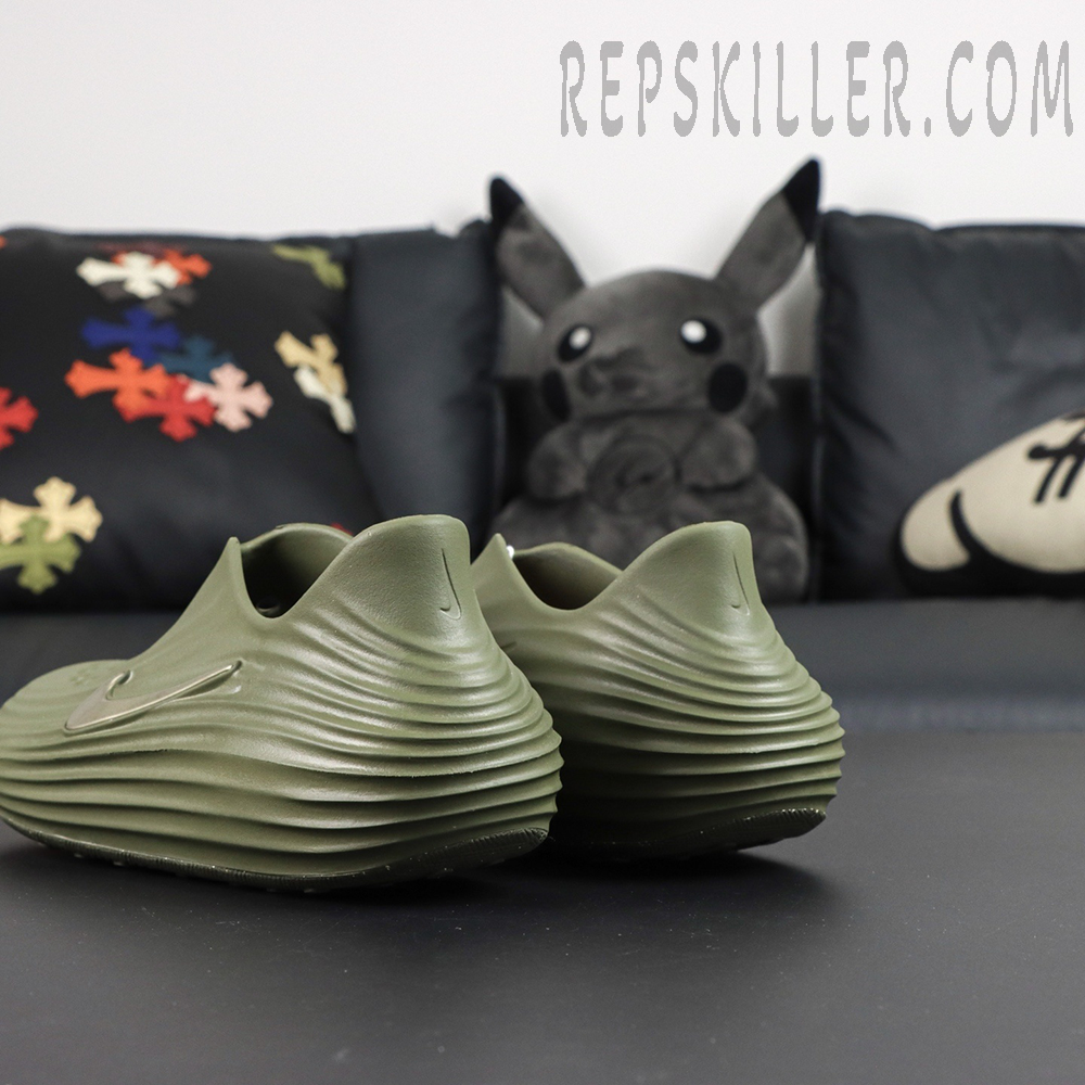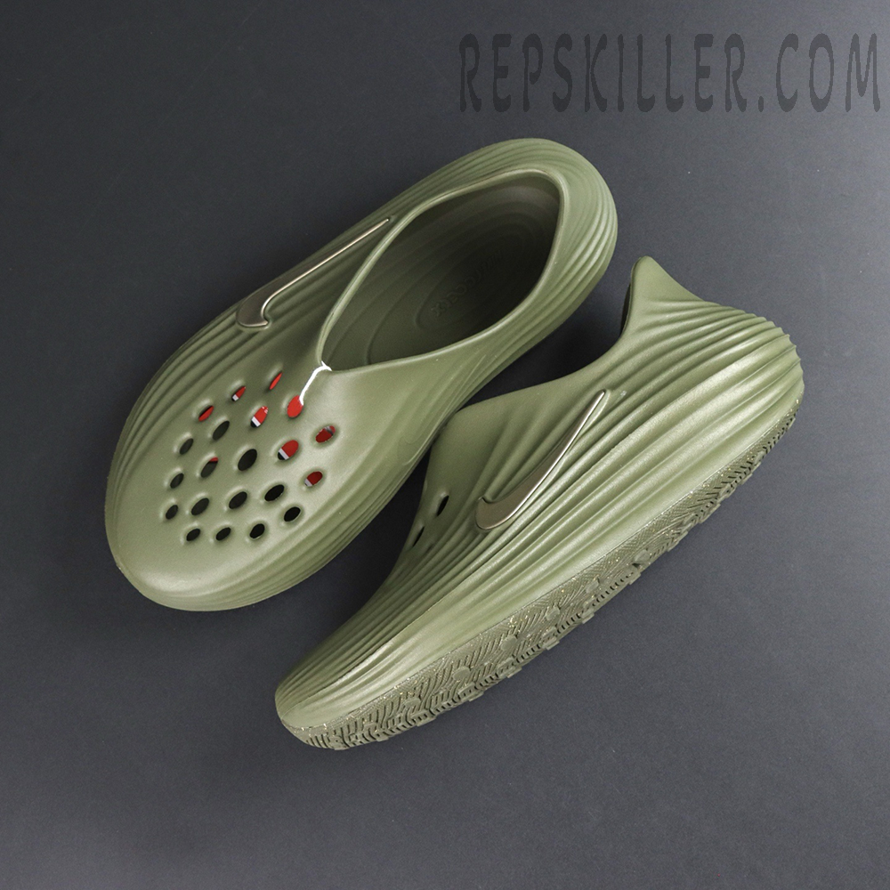The Nike ReactX Rejuven8 ‘Medium Olive’ blends cutting-edge foam innovation with sculptural aesthetics. Crafted from a single piece of lightweight, flexible foam, this slip-on silhouette features breathable perforations across the vamp and sidewalls, delivering airflow and comfort for casual wear or post-workout recovery. The ribbed texture mimics ripple waves, while the earthy olive tone and metallic Swoosh add a touch of sleek utility.