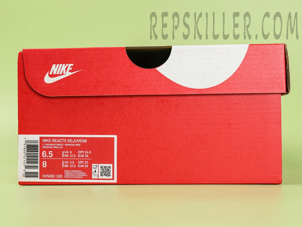 The Nike ReactX Rejuven8 “Muslin” is a recovery-focused sneaker that combines comfort and style. Featuring a soft muslin hue, it offers a natural and minimalist aesthetic. The one-piece ReactX foam construction provides soft and responsive cushioning, while ventilation holes enhance breathability. A sticky rubber outsole ensures reliable traction, and the widened forefoot accommodates various foot shapes for added comfort.