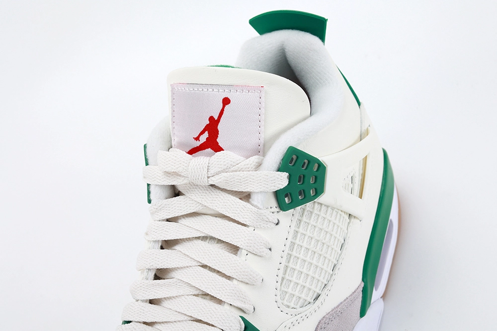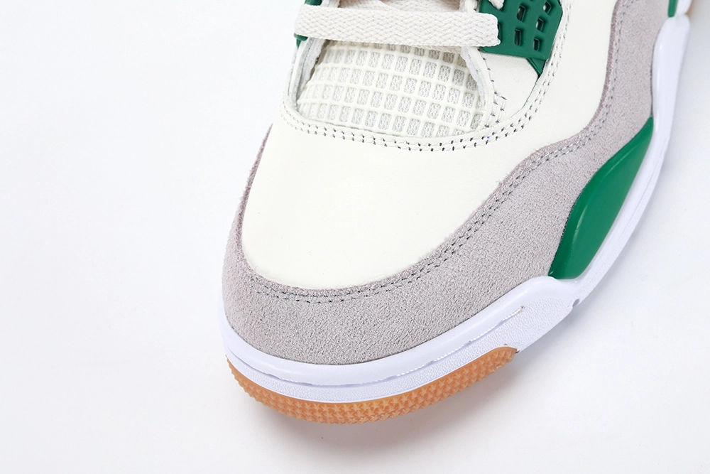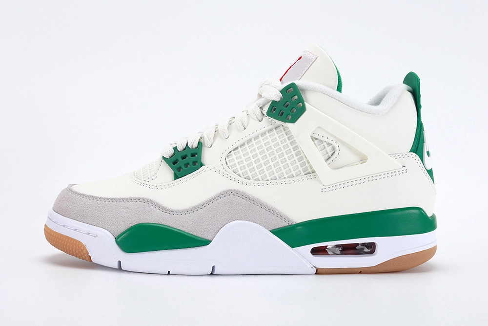 The Nike SB x Air Jordan 4 Retro ‘Pine Green’ is a captivating fusion of skateboarding grit and basketball heritage, marking a significant collaboration that appeals to enthusiasts of both realms. This unique iteration of the iconic Air Jordan 4 silhouette incorporates elements of Nike’s skateboarding line, Nike SB, offering a fresh perspective on a classic design. The ‘Pine Green’ colorway is inspired by the natural hues of pine forests, featuring a vibrant green accent against a base of white and neutral tones, providing a clean and striking aesthetic.