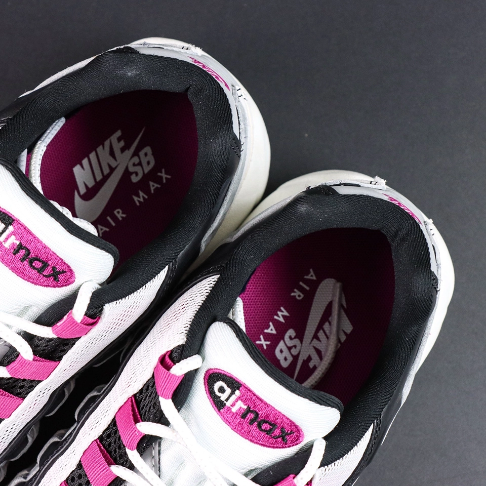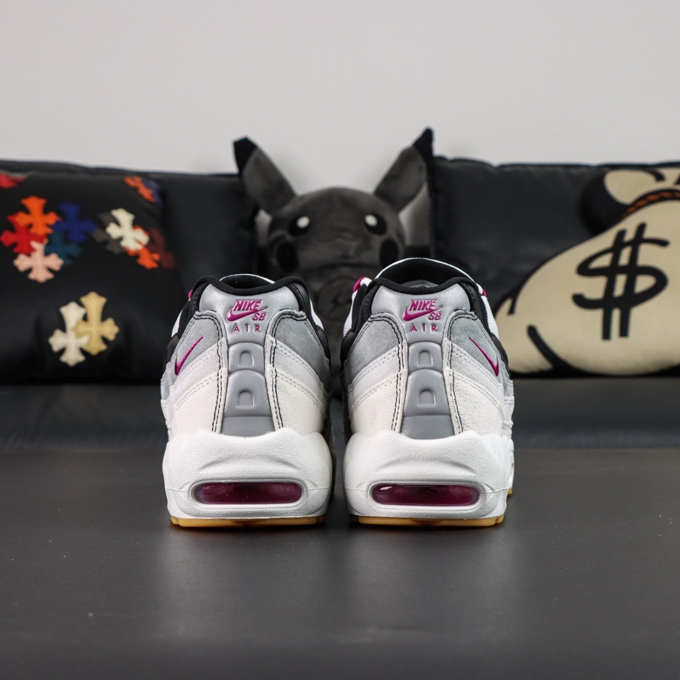 The Nike SB x Air Max 95 ‘Cactus Flower’ transforms the iconic running silhouette into a skate-ready statement piece. Preserving the original’s layered design, the upper features gradient suede side panels, shifting from black to grey with a tactile feel. Fuchsia hits energize the look, showing up on the webbed eyestays, mini Swoosh, and Air units, while the Nike SB heel branding adds a reflective flash. Grounded by a white PU midsole and a gum outsole, this hybrid sneaker balances heritage aesthetics with modern skate functionality.