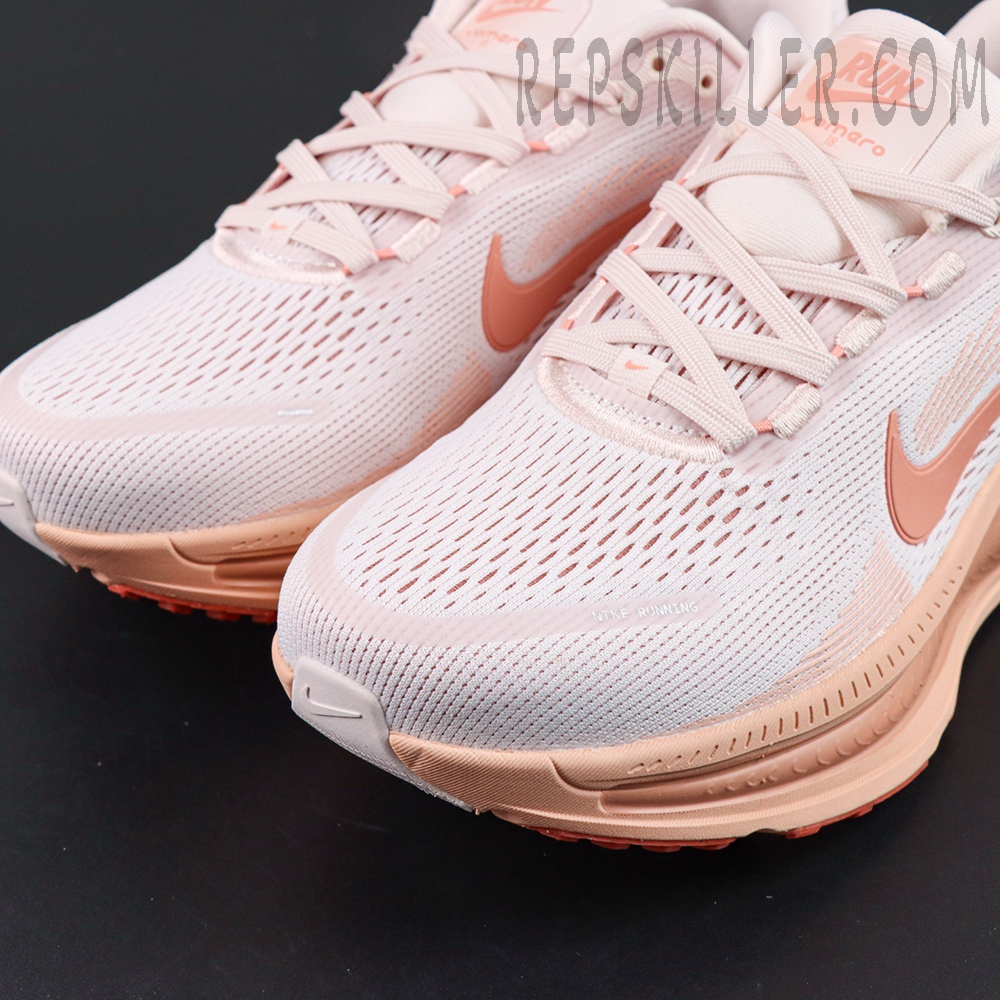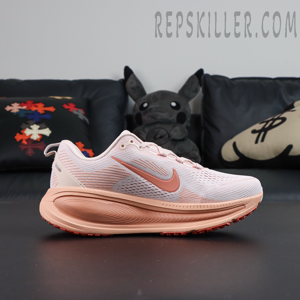 The Nike Wmns Zoom Vomero 18 ‘Light Soft Pink’ delivers an ultra-cushioned ride tailored for daily runs and all-day comfort. Wrapped in a soft pink palette with subtle coral gradients, the engineered mesh upper promotes airflow while offering a lightweight, supportive fit. A full-length ZoomX midsole guarantees energy return and plush responsiveness, paired with a durable rubber outsole for dependable traction. Refined detailing like the dual-toned Swoosh and heel support overlay give this performance runner a graceful, feminine finish.