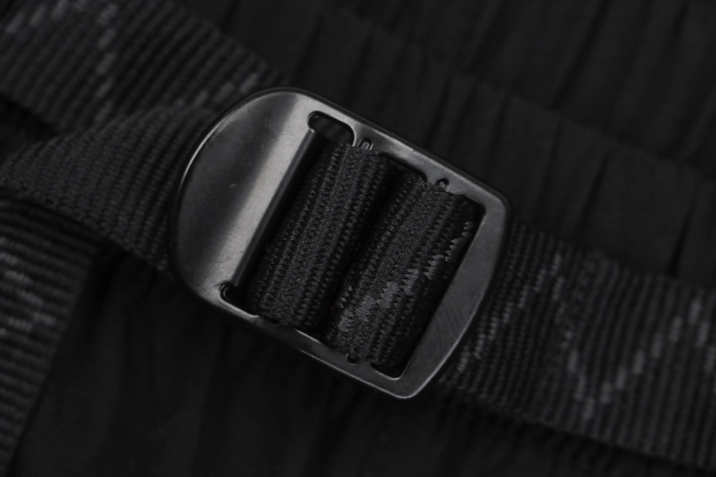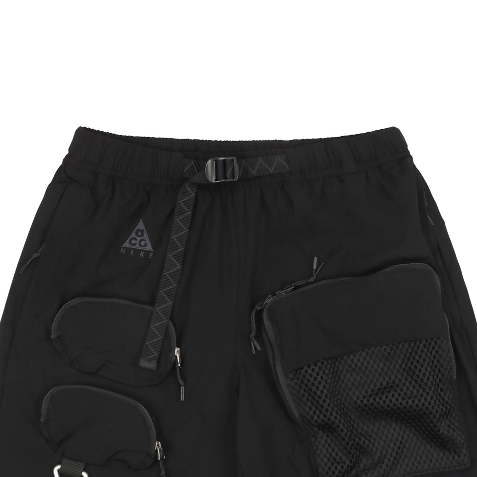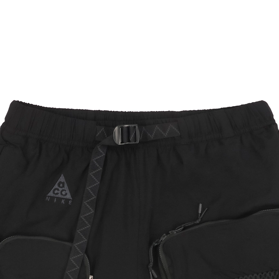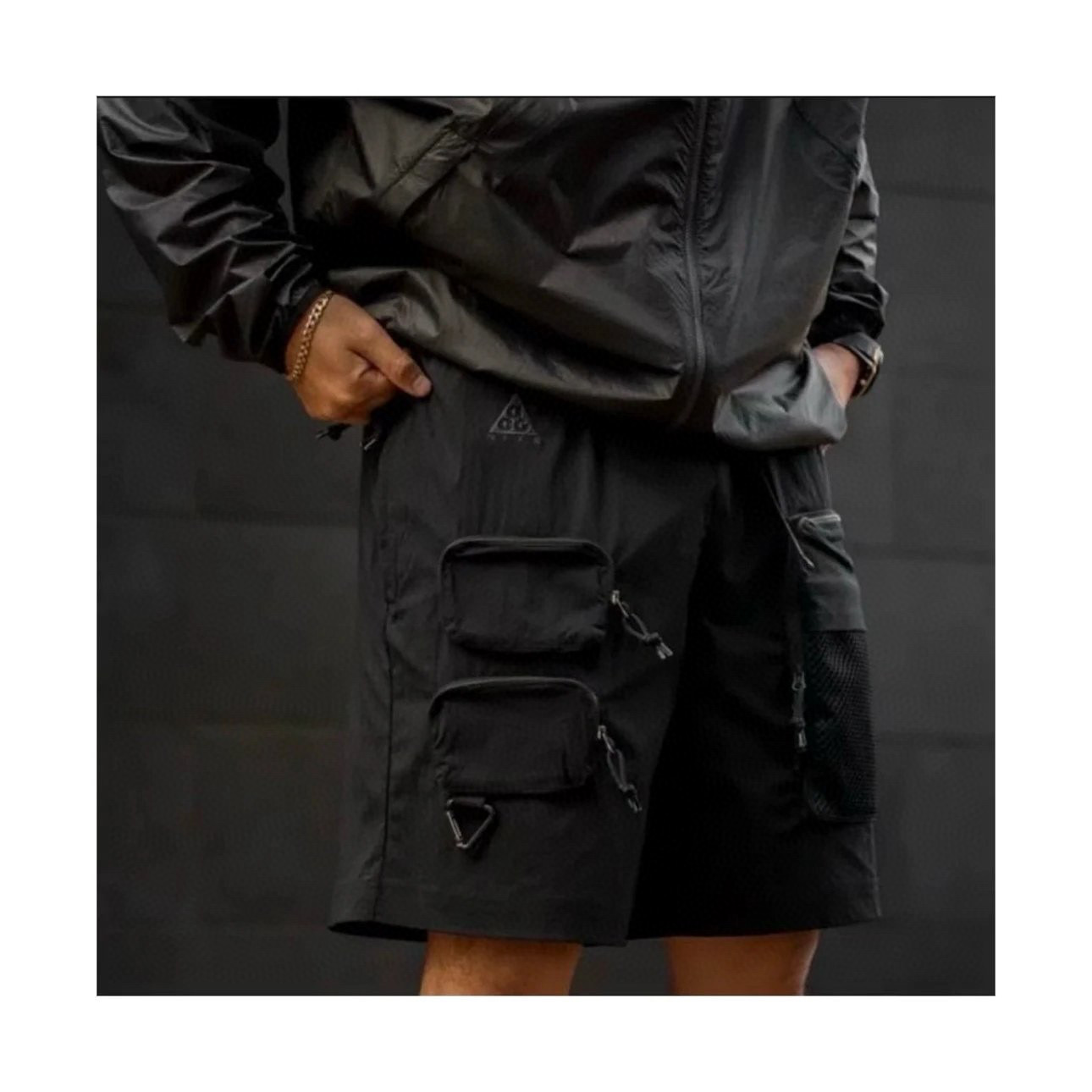 The Nike x ACG Cargo Mesh Pocket Shorts merge performance-ready detailing with streetwise utility. Constructed from custom-woven 50s dual-ply nylon, the fabric enhances breathability by 28% while maintaining a dense and structured feel. The relaxed silhouette is anchored by a modular pocket system—six zipped compartments up front and one at the rear—providing practical storage with a sharp, urban edge. A custom belt with a triangular climbing buckle and embroidered logo finish off the utilitarian aesthetic, making these shorts a summer-ready essential for any terrain.