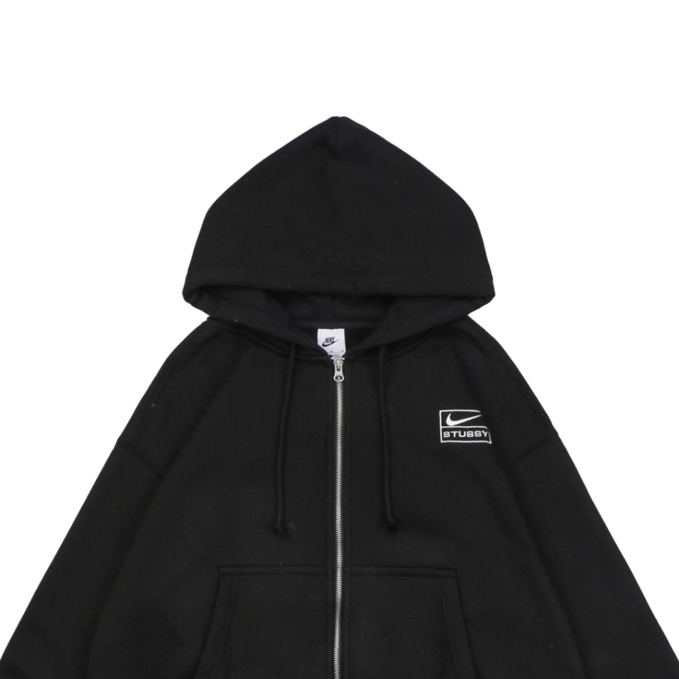 The Nike x Stüssy Box Logo Embroidered Fleece-Lined Zip Hoodie blends iconic streetwear aesthetics with premium comfort. Crafted from a heavyweight cotton fleece fabric, this hoodie features a full-length zipper closure, adjustable drawstring hood and a classic kangaroo pocket. The signature box logo embroidery on the chest adds a clean yet bold highlight, making it a timeless staple for everyday wear. Soft fleece lining ensures warmth and comfort during colder seasons, while the relaxed silhouette provides effortless styling for both men and women. Perfect for casual outfits, layering, or street-inspired looks.