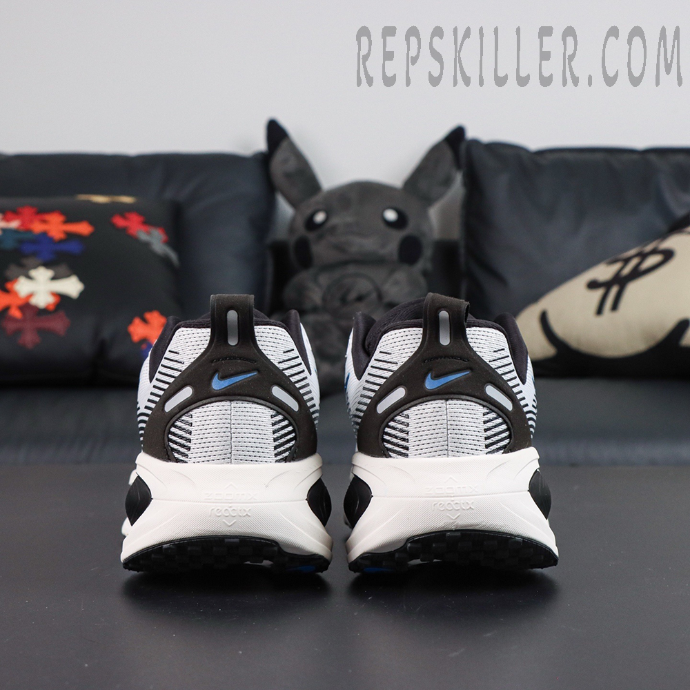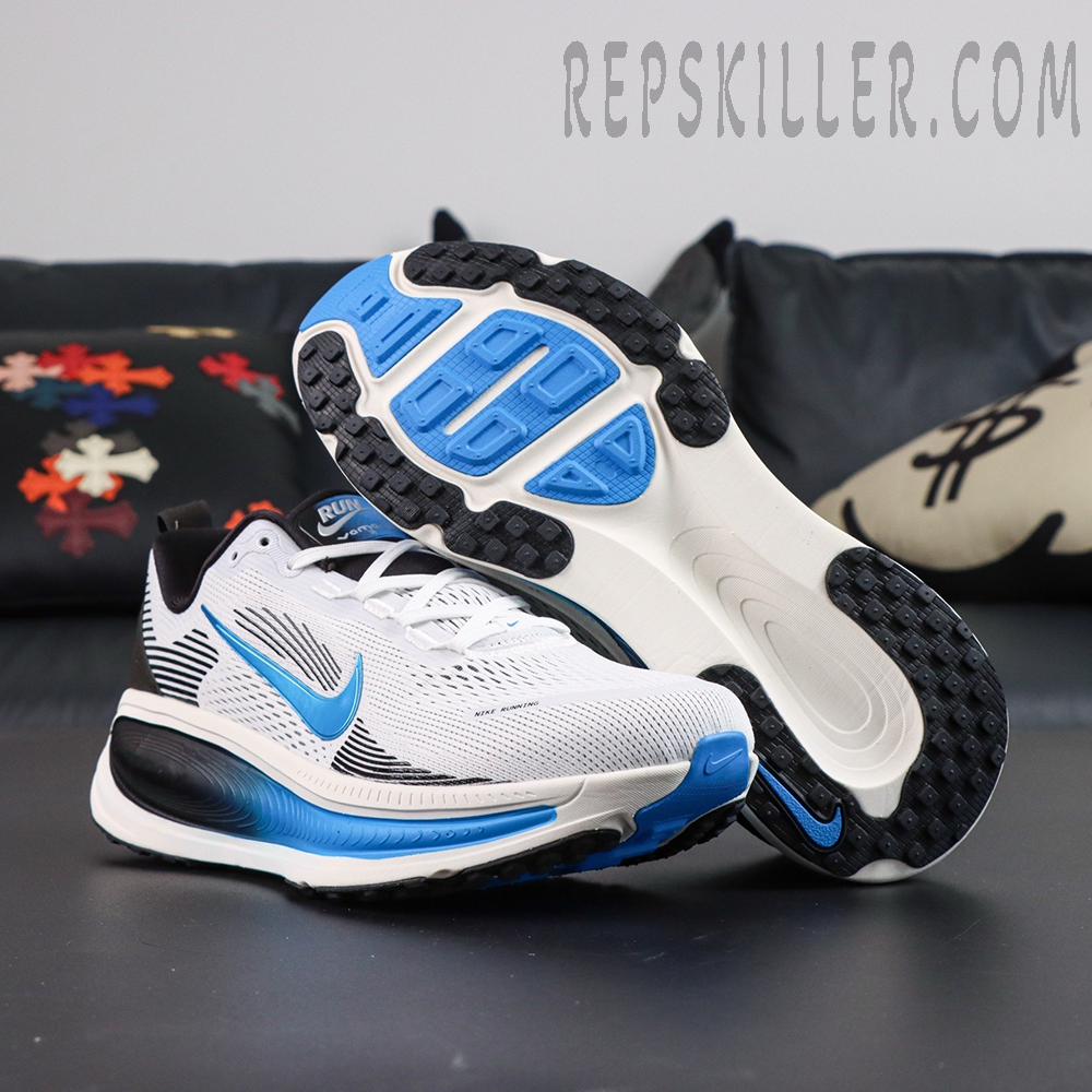The Nike Zoom Vomero 18 ‘White Black Photo Blue’ blends responsive performance with a bold visual aesthetic for runners who demand both function and flair. Featuring a dual-layer engineered mesh upper, the shoe maximizes breathability while maintaining structure. A sculpted ZoomX midsole delivers high-energy return, while the blue-to-black gradient detailing and glossy Swoosh create a dynamic finish. With enhanced heel support and ZoomX foam cushioning, this versatile runner is ideal for long-distance training, tempo efforts, or everyday wear.