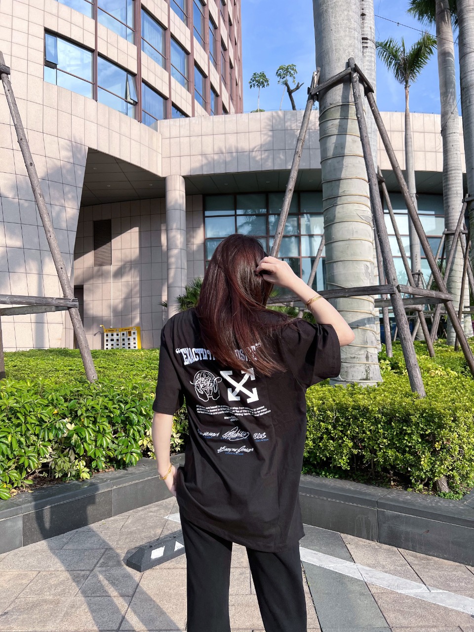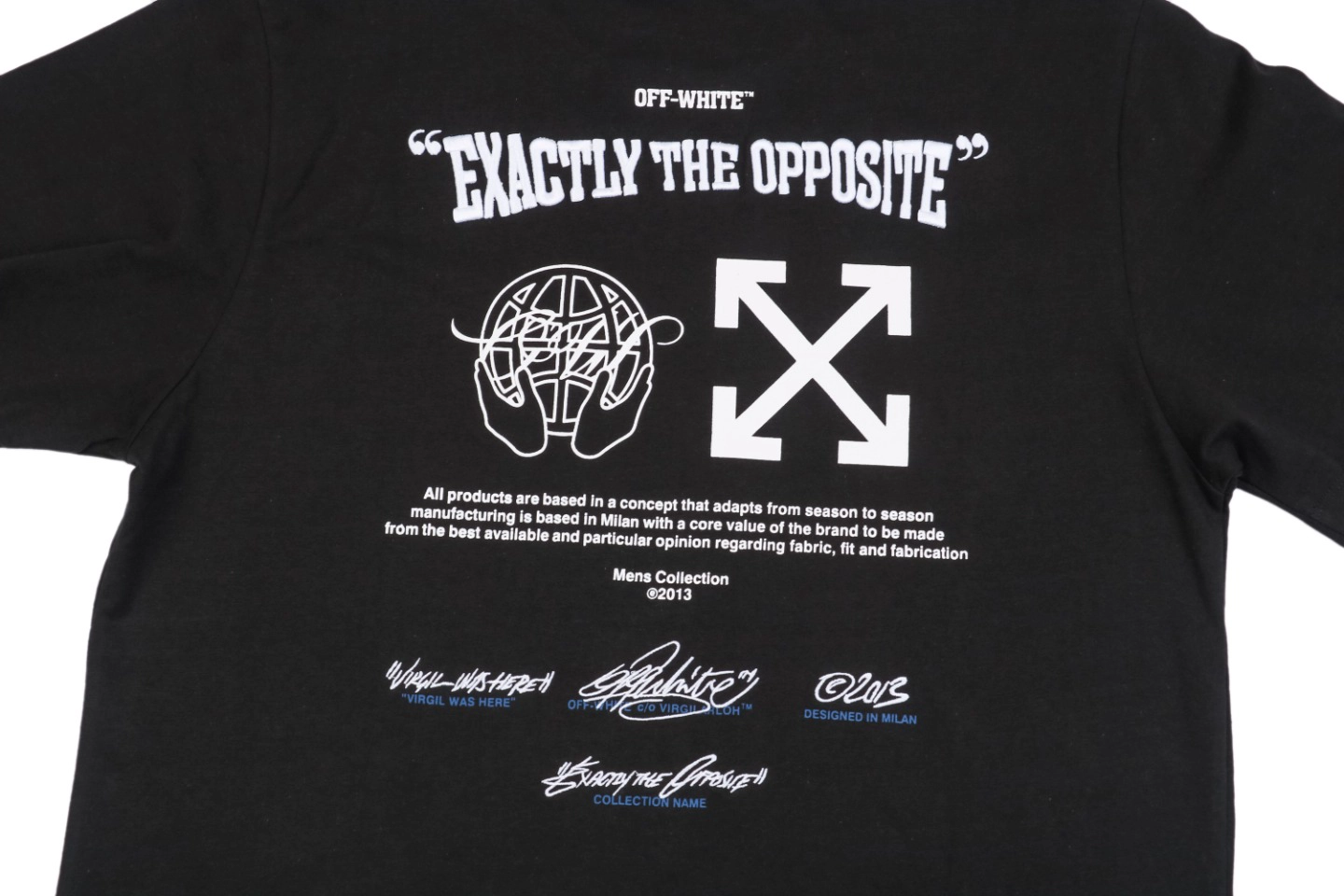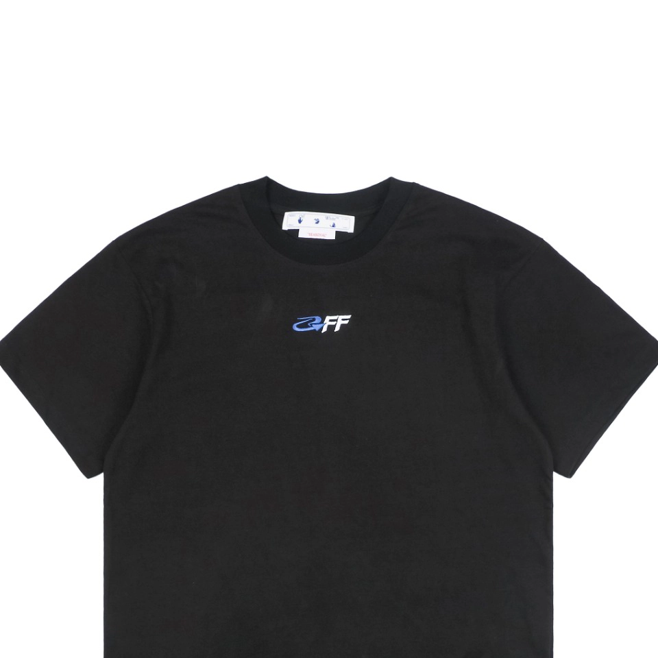 OFF-WHITE Blue Arrow Letter Embroidery T-Shirt is a statement piece that merges design philosophy with streetwear attitude. The striking blue arrow embroidery on the back reflects Virgil Abloh’s signature deconstructive aesthetic, while the minimal letter embroidery on the front adds a touch of refinement. Crafted from premium cotton, it delivers exceptional softness and breathability. With a sharp silhouette and modern edge, this T-shirt perfectly balances comfort, concept, and cool.