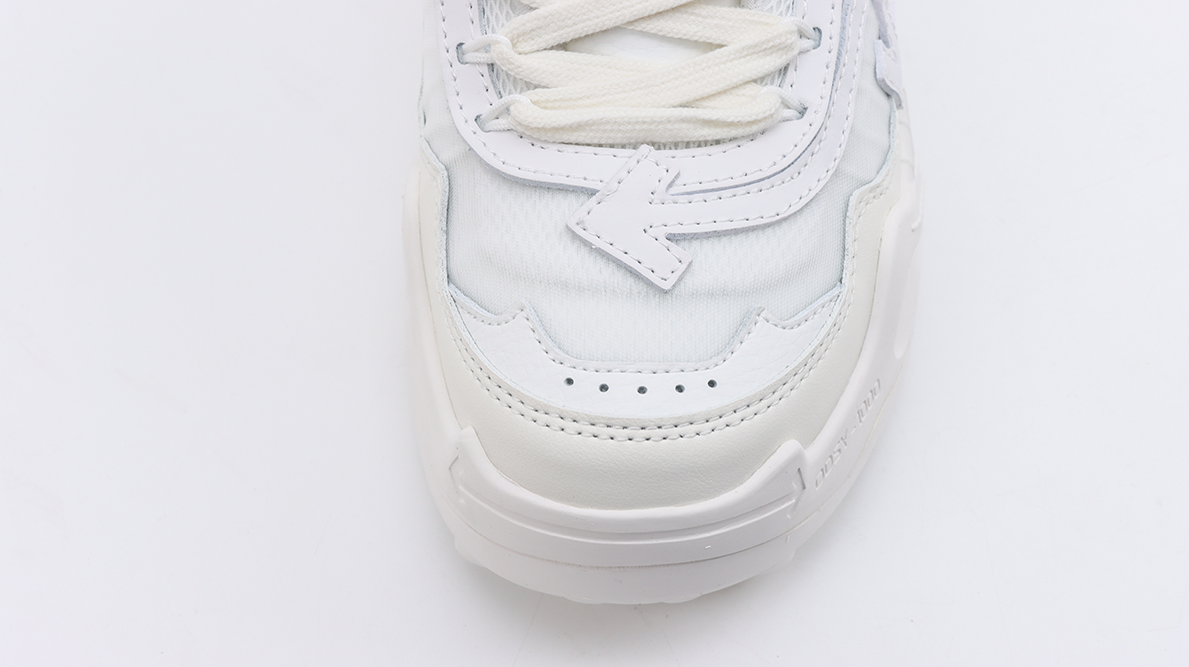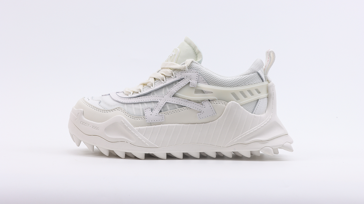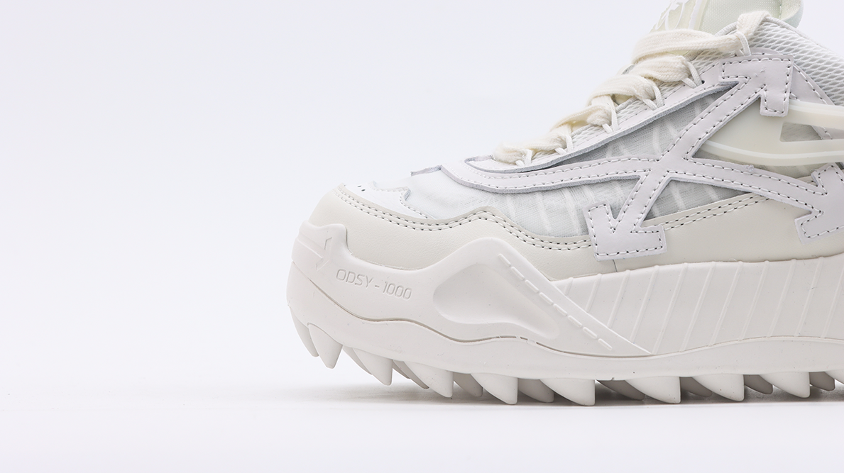The robust, sculpted sole of the Odsy-1000 “All White” features an aggressive tread pattern that offers excellent traction and stability, making the shoe as functional on the streets as it is stylish. This sole not only complements the upper’s sleek appearance but also adds to the overall impact of the shoe, creating a bold silhouette that is instantly recognizable.