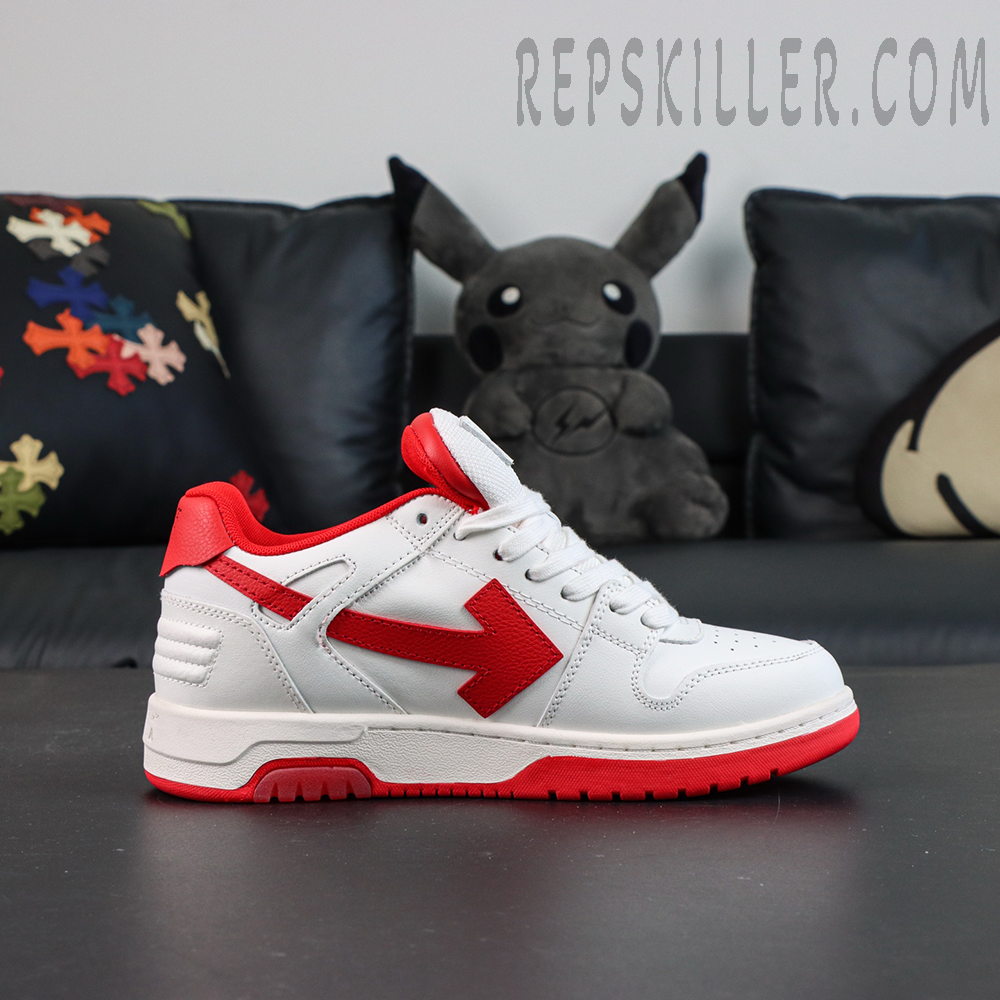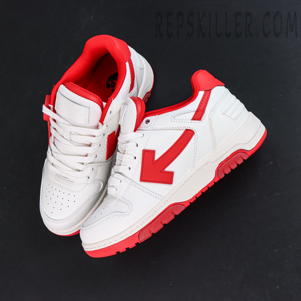 The ‘White Red’ Out of Office Low is perfect for those who want a clean sneaker with strong visual impact, blending timeless color blocking with Off-White’s signature contemporary edge.